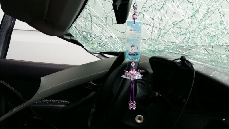 再仔细看挡风玻璃位置的时候,一个中国莲花的挂件静静地挂在后视镜上面,挡风玻璃瞬间冲向驾驶员的时候,似乎有一种神奇的力量让玻璃停了下来。哪里来的莲花这么神奇,在不测风云降临的千钧一发默默地保护着彼得?