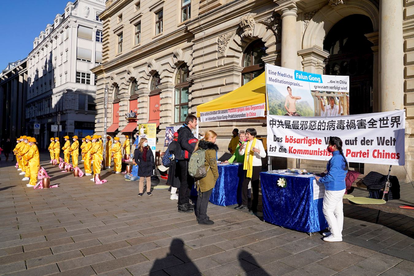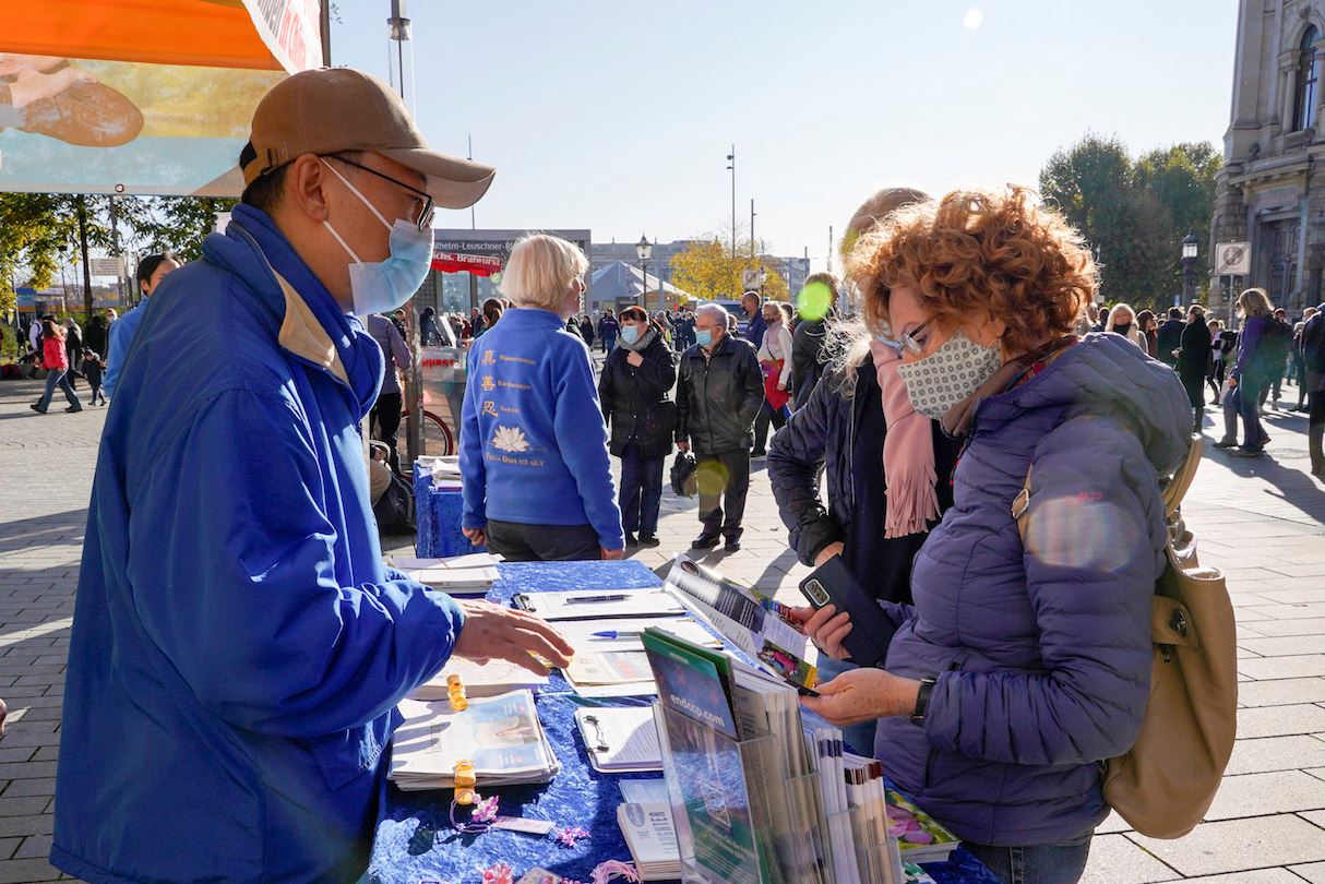 一位学员表示,她遇到的人都对法轮功信息非常感兴趣,倾听学员讲述真相。学员告诉民众,中共是一切乱象的罪魁,这场全球大瘟疫就是中共欺骗、隐瞒、说谎的后果。中共对德国构成了直接威胁,尤其目前封锁措施可能导致更多公司倒闭,中共更有可乘之机。很多人听后表示认同。