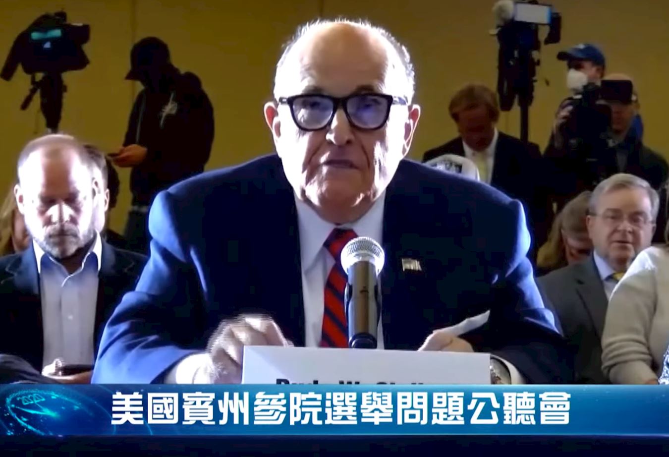 ![]() 川普团队的朱利安尼律师在听证会上作证 |