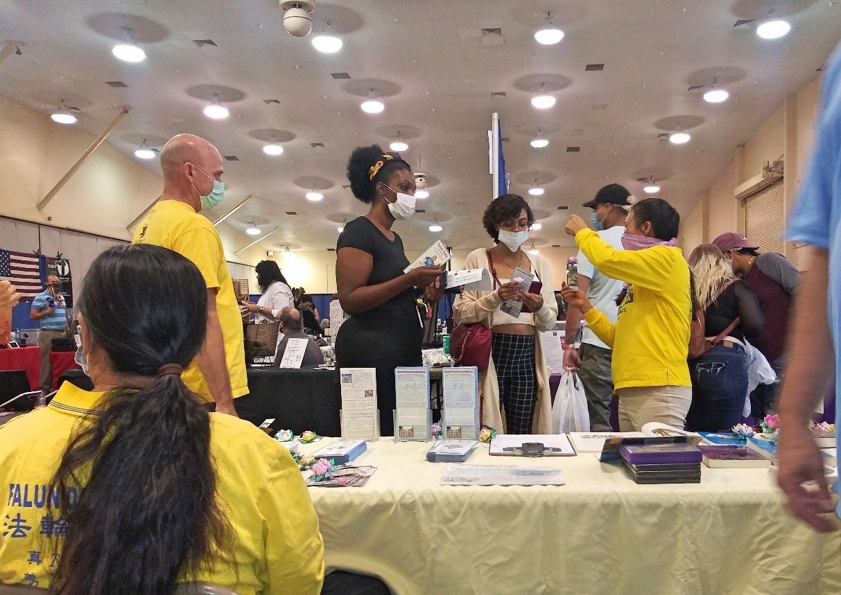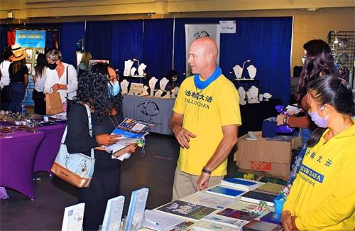 由于受到中共病毒的影响,今年的展会,参观者没有往年的多,不过仍然有许多是有缘人前来了解真相。有的参观者听完真相后,表示有兴趣想学法轮功,学员便帮助他们找到当地炼功点的联络方式。