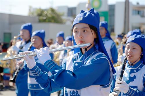 ![]() 图1~5:法轮功学员组成的天国乐团在游行中 |