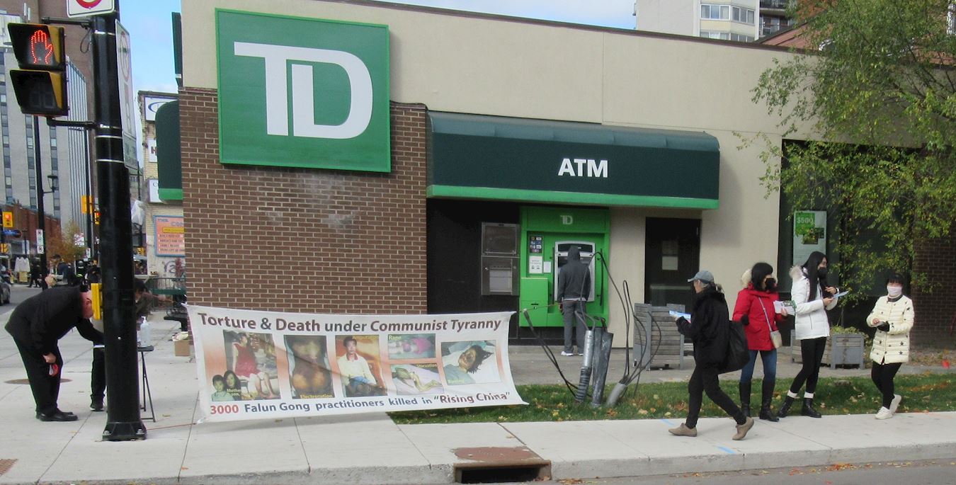 在埃尔金(Elgin)街的一个药店的收银员隔窗看到法轮功学员打的真相横幅后,抽空跑出来在请愿信上签名。她对记者表示,她支持法轮功学员反迫害。
