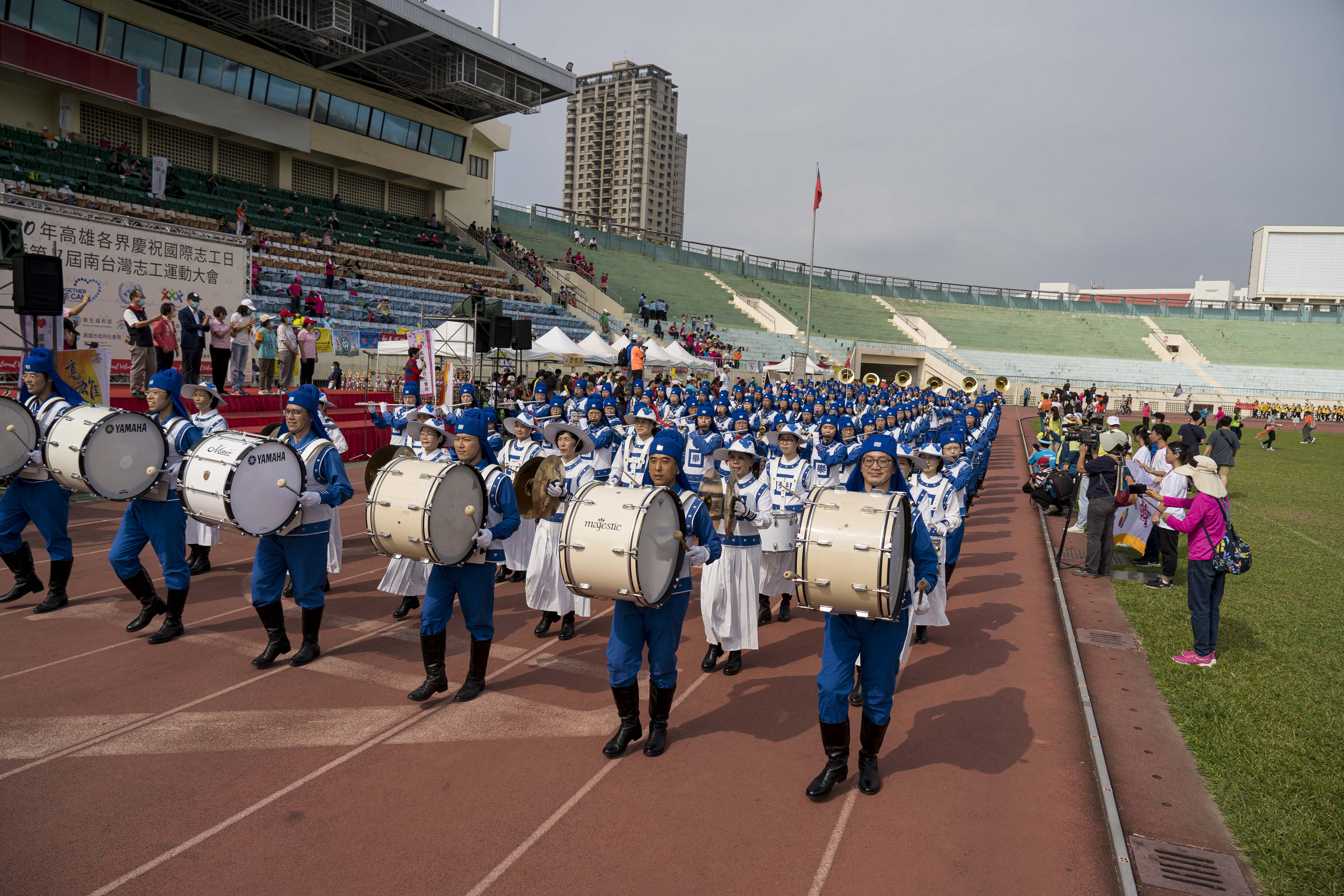 ![]() 图3~5:二零二零年十一月二十八日,第十一届,“全国志工大会师”台湾法轮大法天国乐团应邀以宏亮的鼓号乐声引领上百志工服务团队进场,受到志工朋友们的欢迎。 |