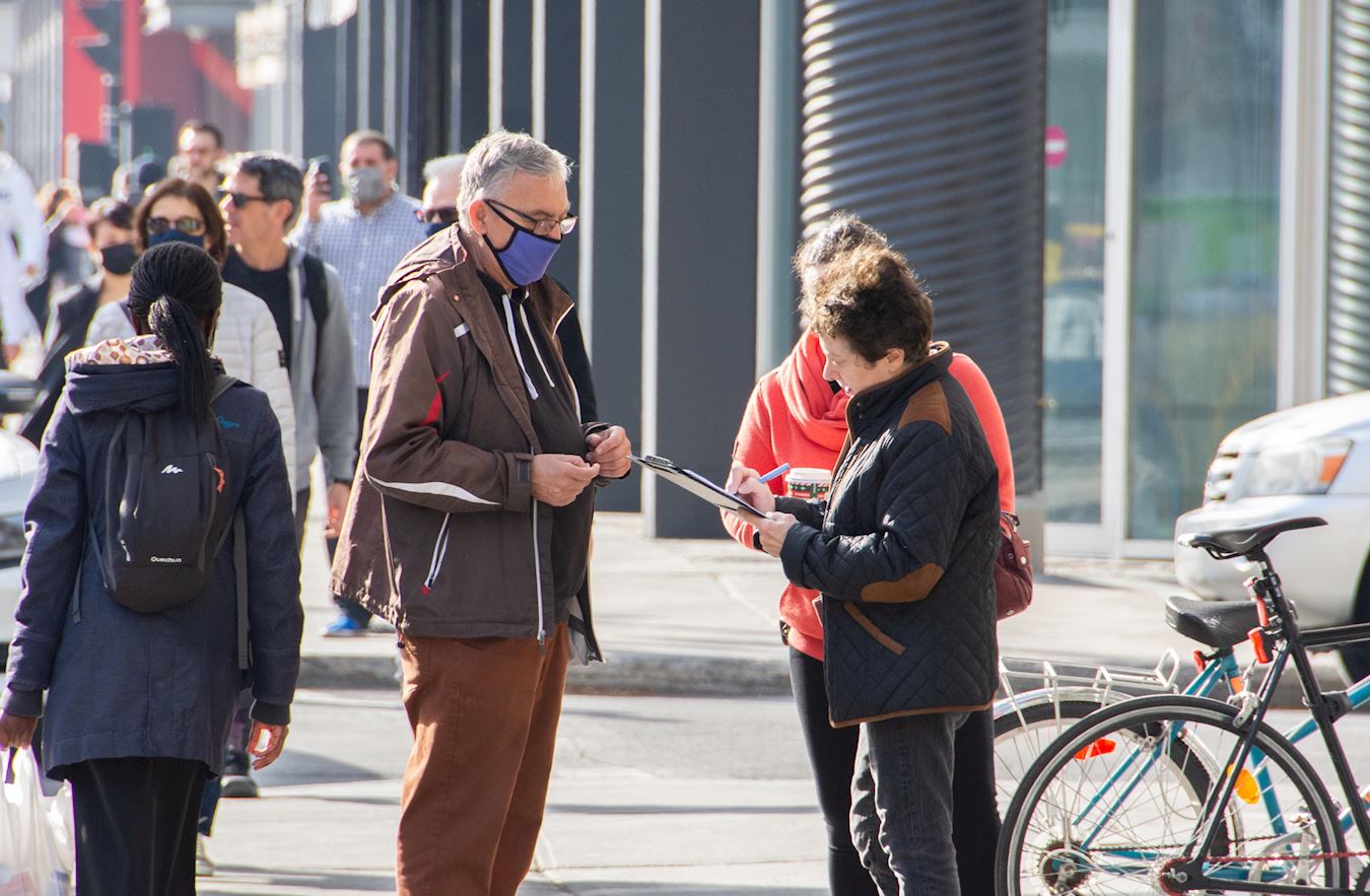 法轮功学员约翰·哈拉斯(John Halas)在路上向民众征签,呼吁加拿大政府用马格尼茨基法案,制裁对迫害法轮功负主要责任的中共高层官员。哈拉斯表示,在中共邪恶面前,人们不应该袖手旁观,每个人都发出声音,才能制止它行恶。他说:“很多人欣然签字,有人对我说:是的,我们知道中国在发生什么,我们必须制止。有一位女士毫不犹豫地签了字,她说:只要是阻止共产党杀人的请愿信,我都要签。”