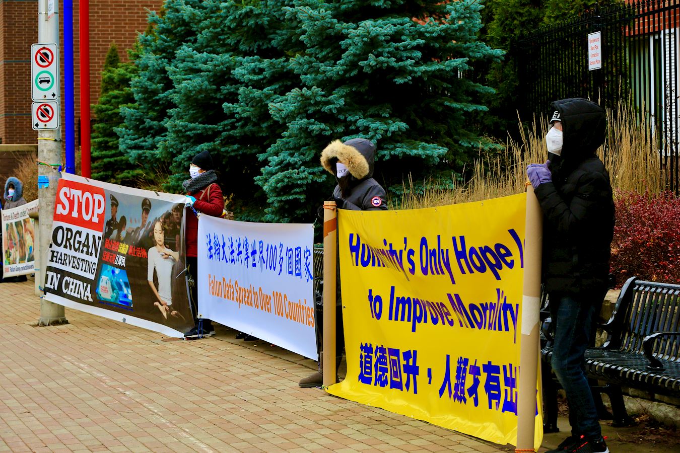 图1~6:加拿大首都法轮功学员利用周末时间,在渥太华市中心主要路口通过横幅、展板、征签的方式向路人讲述法轮功在中国21年来无辜遭受的迫害。