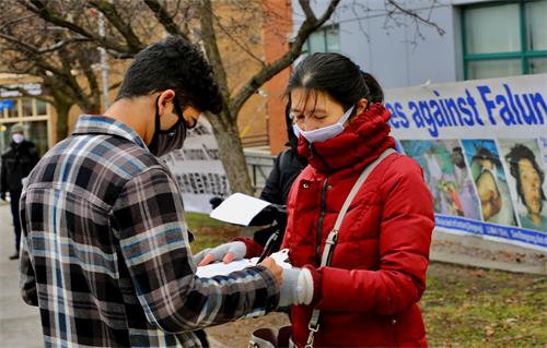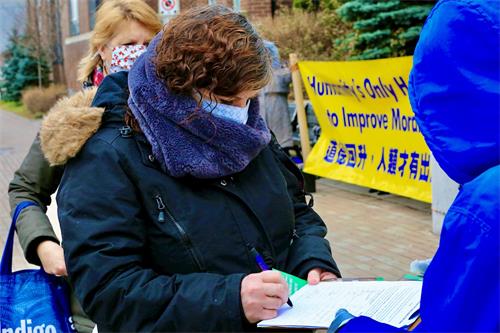 许多渥太华人被法轮功学员坚持不懈和平反迫害的精神感动,纷纷在请愿信上签名支持。