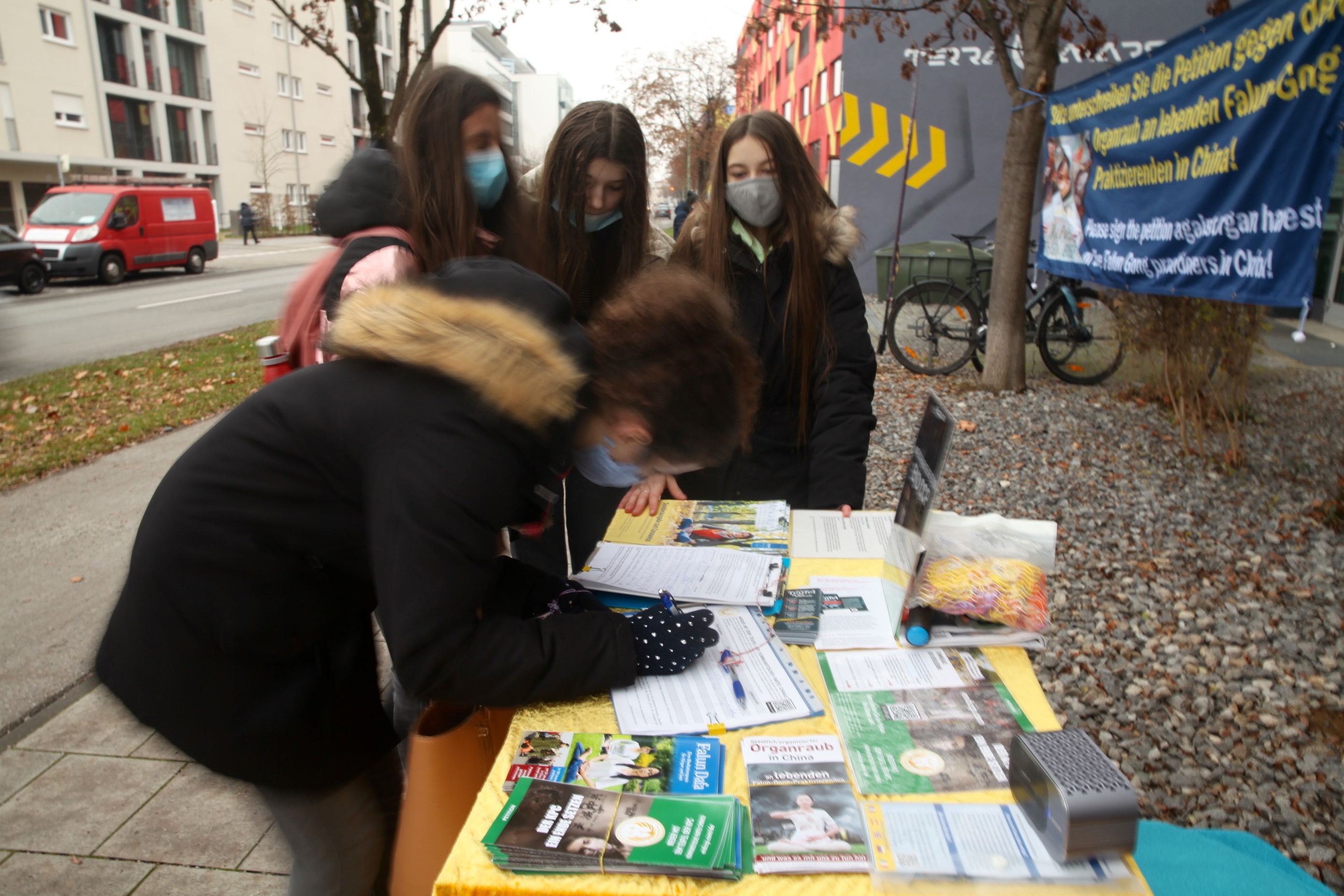 ![]() 图6:二零二零年十二月十一日,法轮功学员在自由慕尼黑广场(Münchner Freiheit)举办讲真相活动。 |