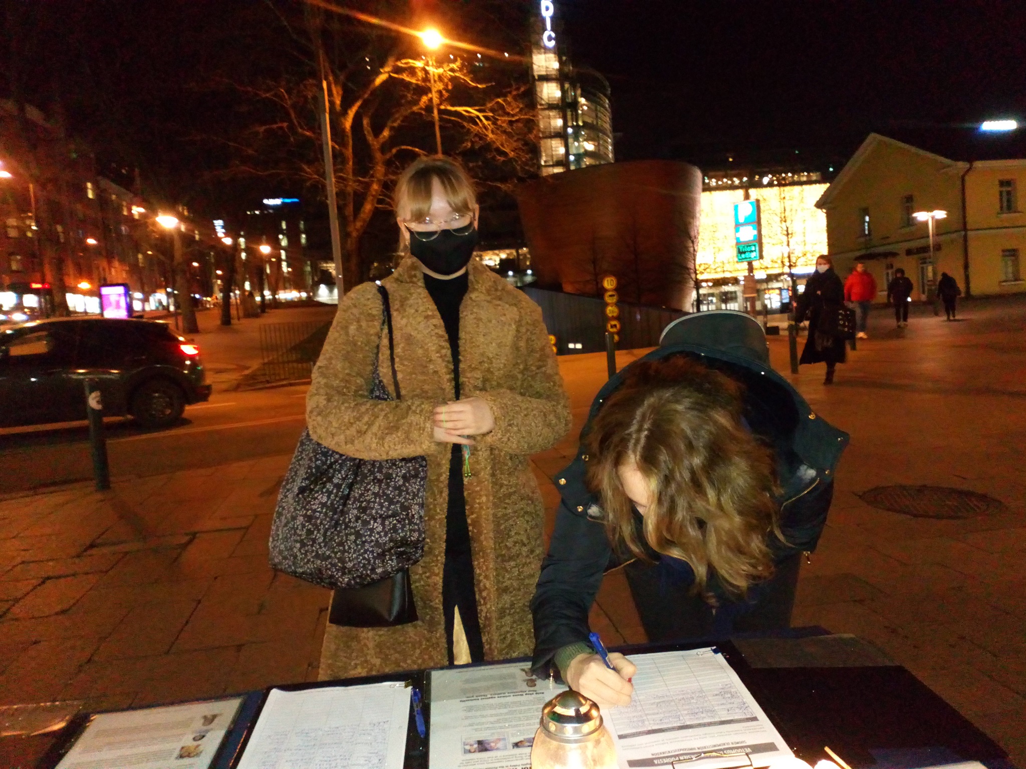 下午三点至六点,学员来到赫尔辛基甘比购物中心外烛光夜悼,并通过演讲向路人介绍法轮大法教人按照“真善忍”做个好人,弘传世界一百多个国家和地区,却遭到中共非法关押,酷刑折磨,甚至被血腥杀戮。