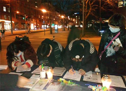 ![]() 图2:芬兰法轮功学员在赫尔辛基举行烛光守夜活动。 |