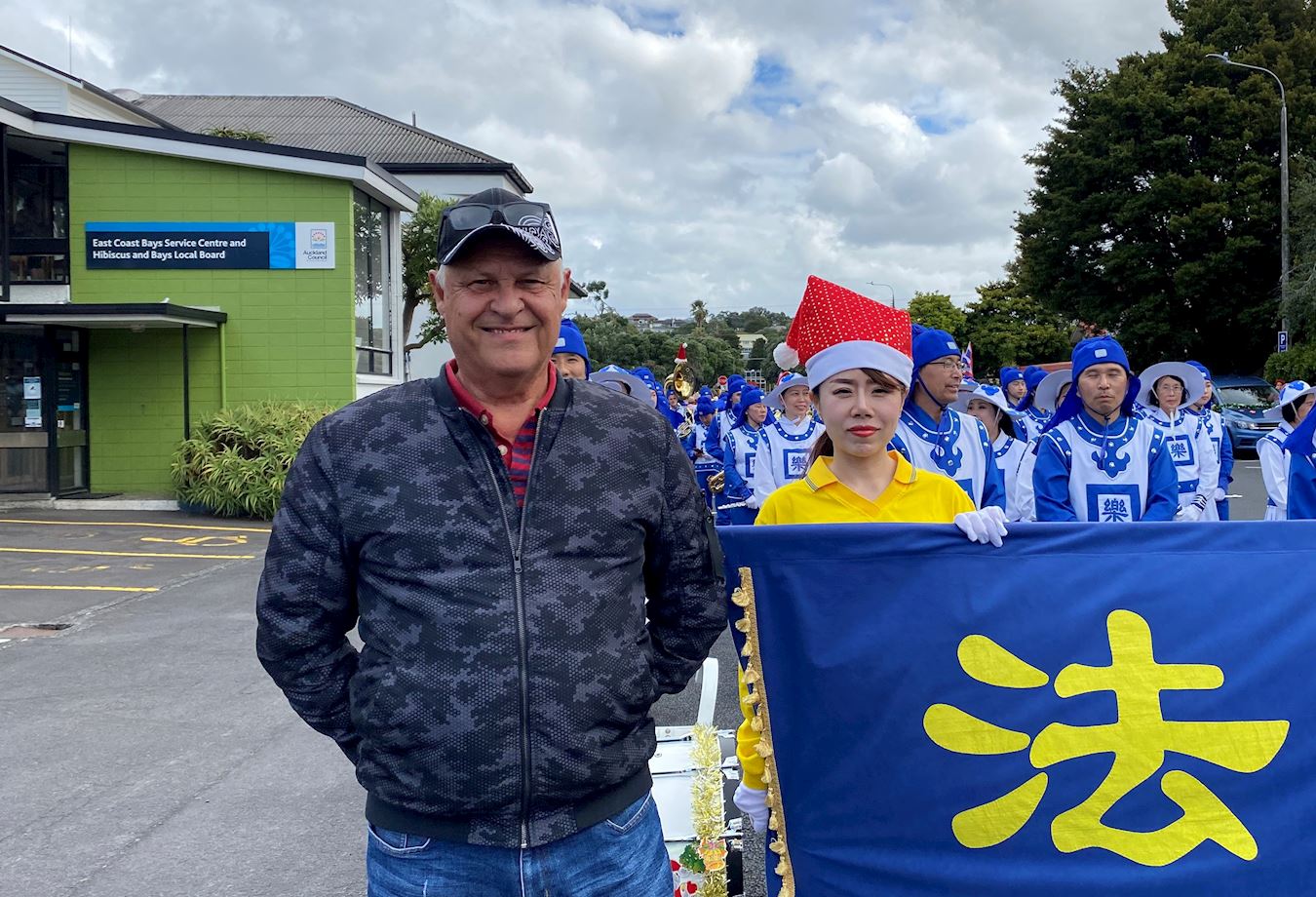 丹·比杜瓦(Dan Bidois)毕业于哈佛大学,曾经是新西兰国家党议员。他表示非常高兴每年在圣诞游行时,都能看到法轮功学员们的参与。他说:“他们(法轮功学员)就是新西兰中国社区的见证(testimony ),非常棒!今天我们在庆祝圣诞节的同时,也在庆祝各个族裔的多元文化,而法轮功团体就是我们社区的一部份。他们‘真、善、忍’的价值观,在我听起来非常的好。”
