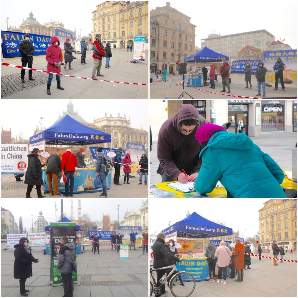 由于中共病毒(武汉肺炎)的影响,慕尼黑已实行第二轮半封城,城里行人大幅度减少。尽管如此,依然有不少人被吸引,前往法轮功信息台签名和索取资料。一位刚来德国学习音乐的男青年跟法轮功学员交谈之后,很快就退出了中共少先队。