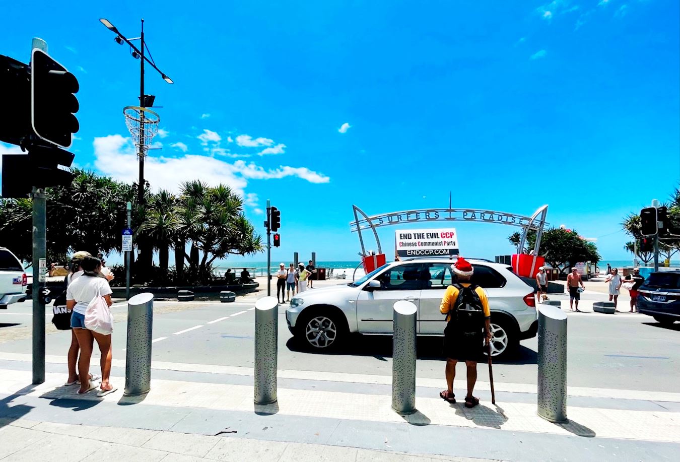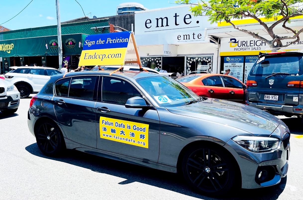 由澳洲昆士兰法轮功学员组成的真相车队从南港米切尔公园(Mitchell Part Southport)出发巡游,行经著名的冲浪者天堂(Surfers paradise)、布罗德海滩(Broadbeach)和伯利角海滩(Burleigh Head)最终抵达终点站黄金海岸艺术中心,历时四个小时。车队成员亚丹(Adan)表示:“中共的存在威胁着世界上的每一个人,所以我们要广传真相。