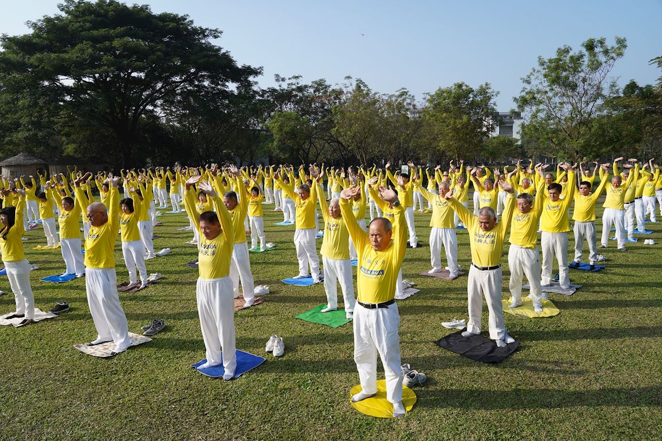 随后,在五套功法演示中,祥和悦耳的炼功音乐响起,法轮功学员以优美的功法动作,向世人展现法轮大法的美好。