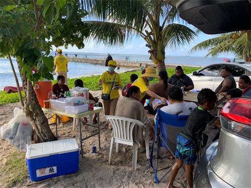 【明慧网二零二零年十二月二十七日】自二零二零年十一月中旬以来的每个周末,塞班岛“传递法轮大法真相”车队游行已历时一个多月,征签活动已近四个月。塞班岛土著居民既纯朴又善良,二十多年来塞班岛学员们坚持弘扬法轮大法,人们对法轮大法的祛病健身功效和“真善忍”的普世价值纷纷表示支持与赞美。土著居民用各种方式鼓励与赞美游行车队,有招手示意的,合十的,有静静地鞠躬看着车队缓缓驶过的,有鸣笛的,有竖大拇指的,有因看到了车队游行想学炼功法的。