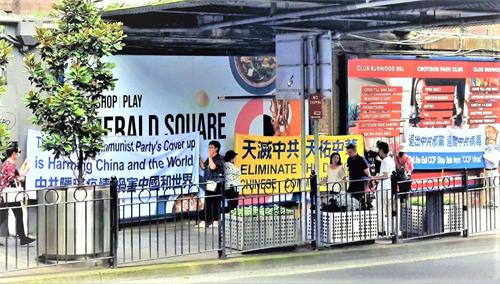 ![]() 图2~3:十一月二十二日法轮功学员在悉尼博霍德(Burwood)主街上展横幅、讲真相。 |
