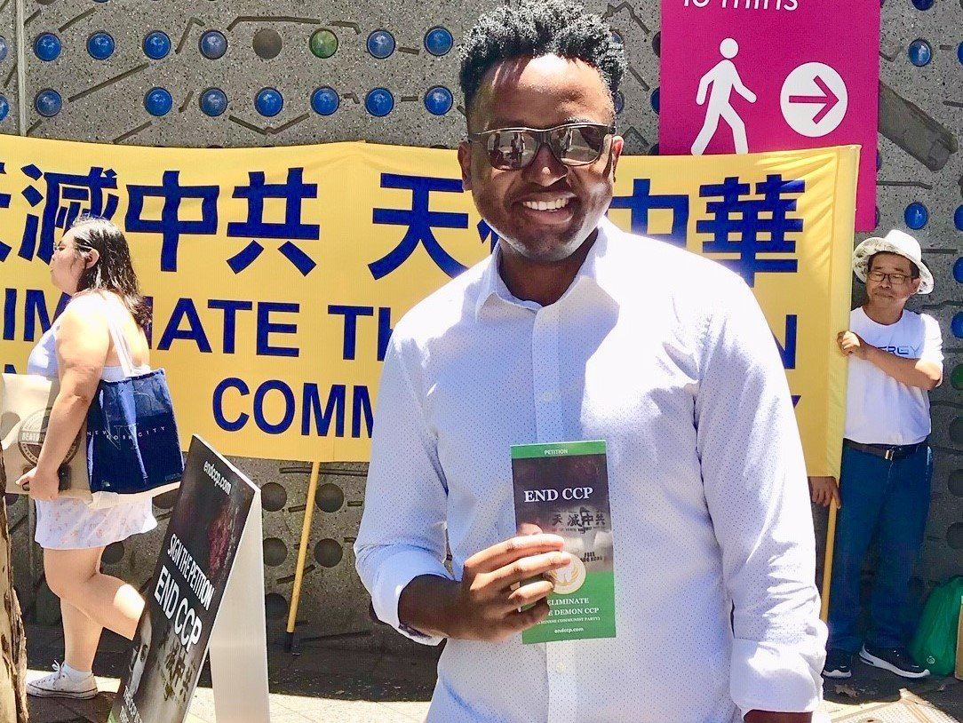 罗伊德(Loyd)说:中国人民需要摆脱中共的洗脑宣传,赶快觉醒。象今天这样的征签活动很有意义,为维护人权制止暴政发声,是我们每个人应该做的。