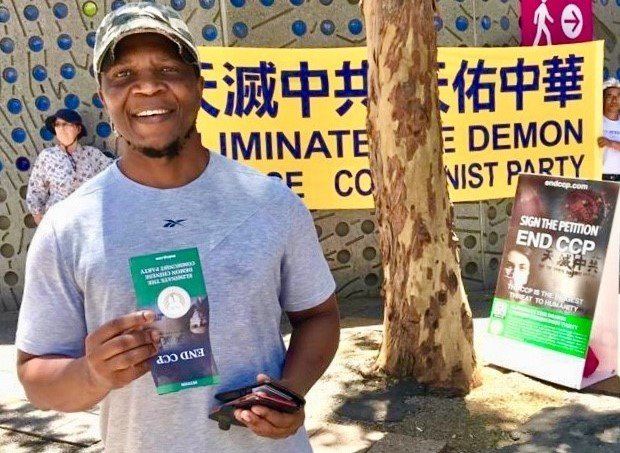 拉凯·佩瓦(Lucky Pewa)表示:“我百分之百支持法轮功学员揭露和谴责中共罪行的活动,这是让人了解真相的最佳方法,我觉得法轮功唤醒了我们。”