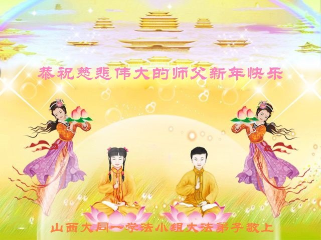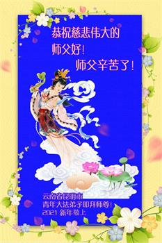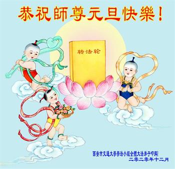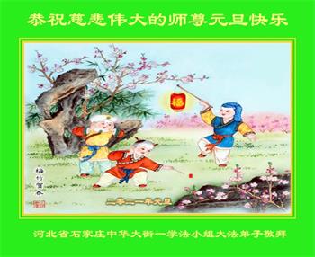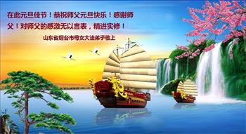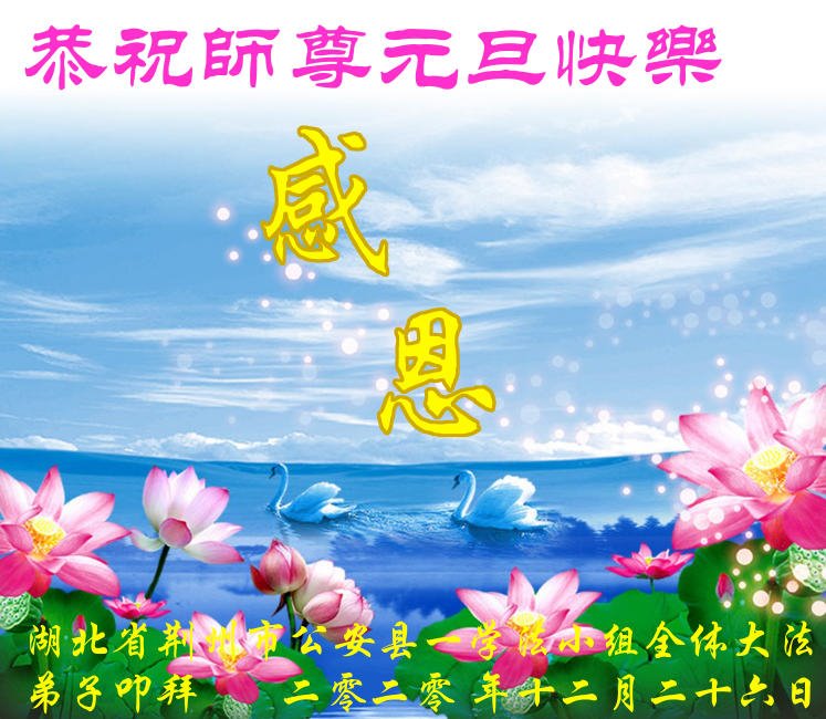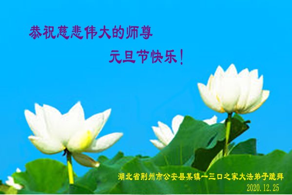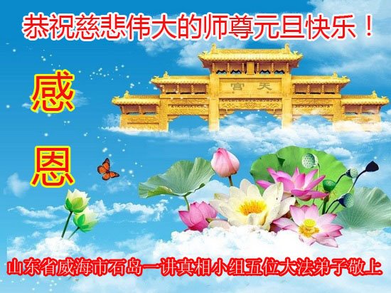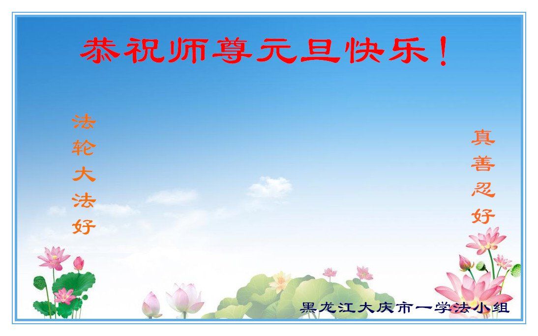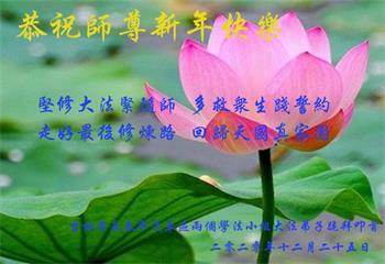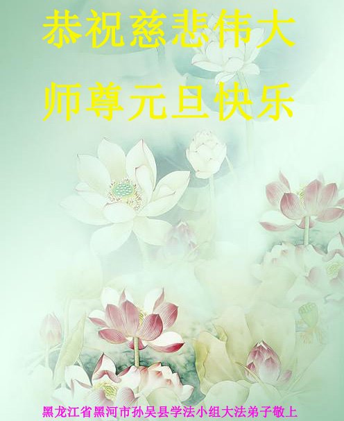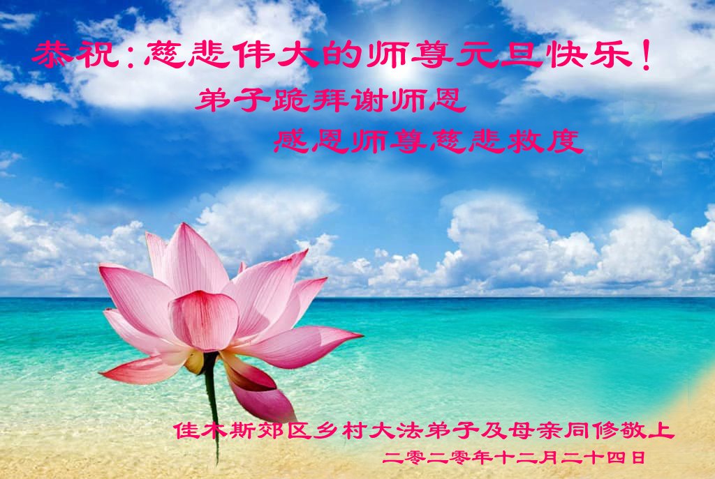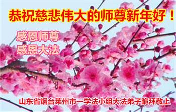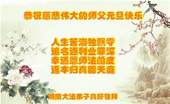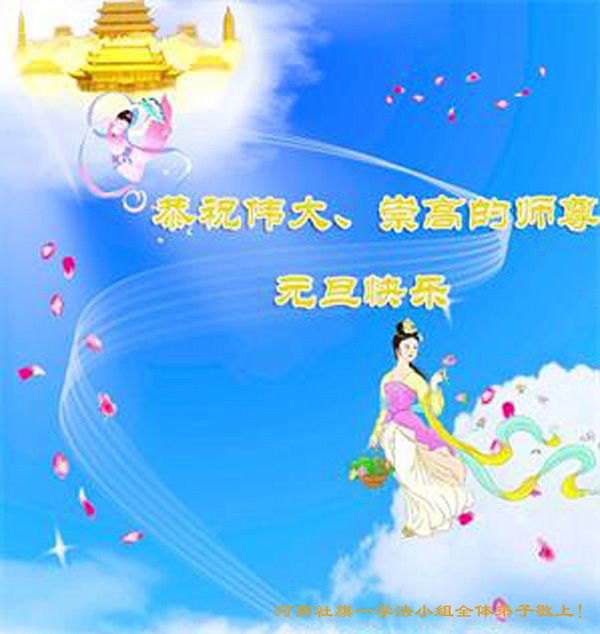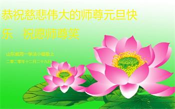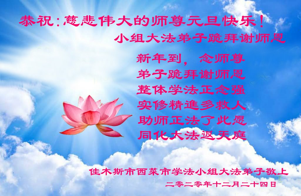 师尊您好!恭祝慈悲伟大师尊元旦快乐!我们是大陆大法弟子学法小组,感恩师尊慈悲苦度,感恩师尊洪恩浩荡!唯有努力修好自己,不辜负师尊的厚望,完成史前大愿,圆满随师还,叩拜师尊。