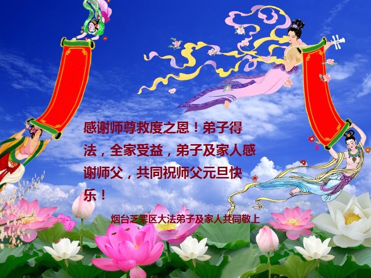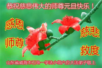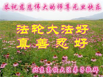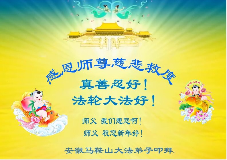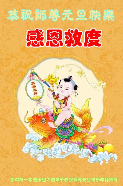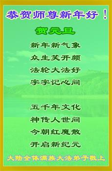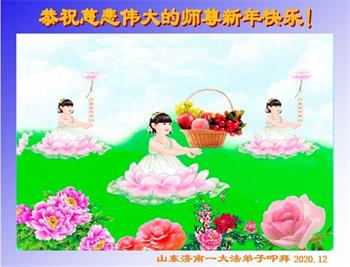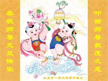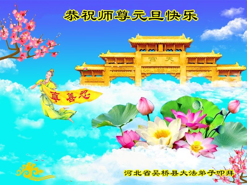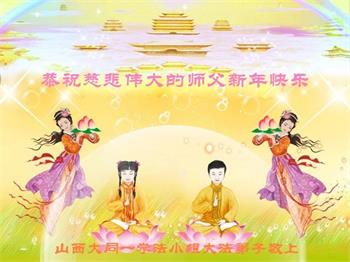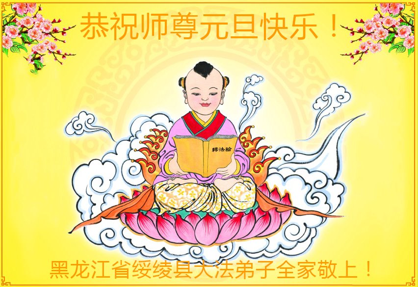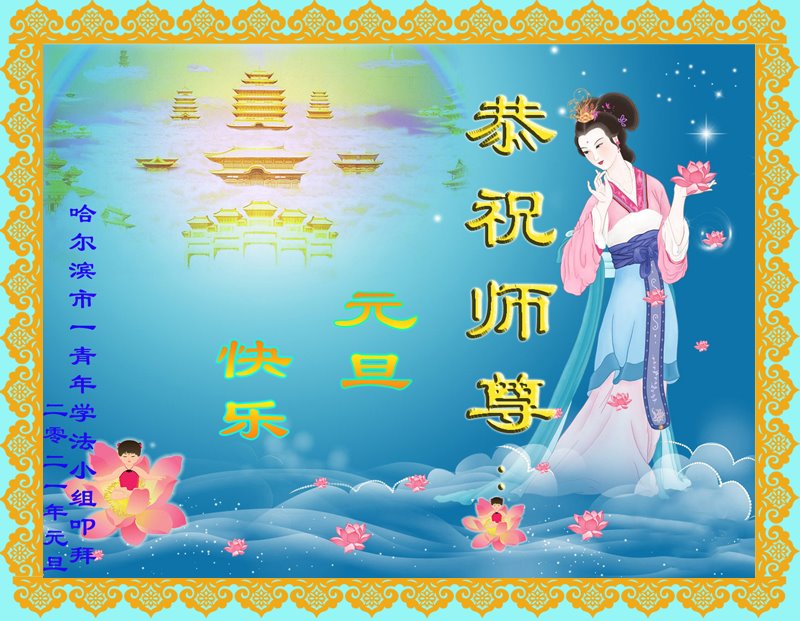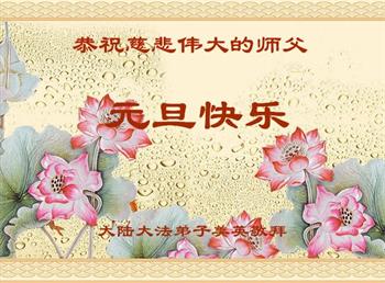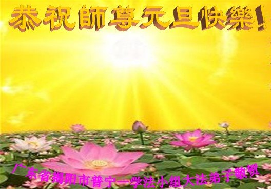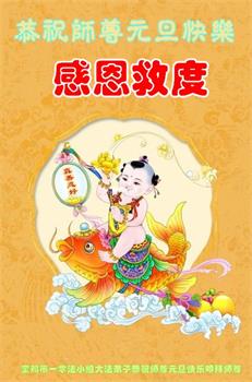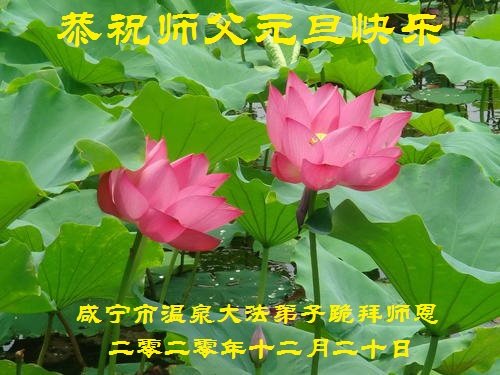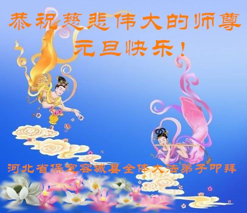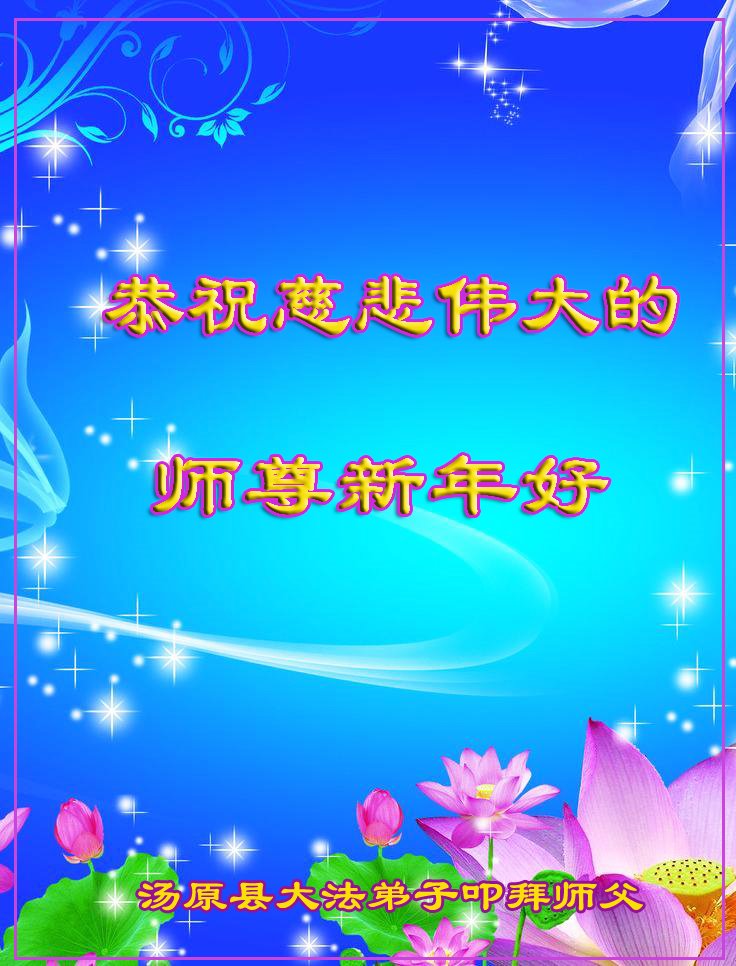 师尊您好!恭祝慈悲伟大师尊元旦快乐!我们是大陆大法弟子学法小组,感恩师尊慈悲苦度,感恩师尊洪恩浩荡!唯有努力修好自己,不辜负师尊的厚望,完成史前大愿,圆满随师还,叩拜师尊。