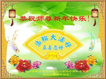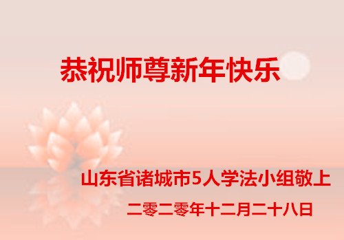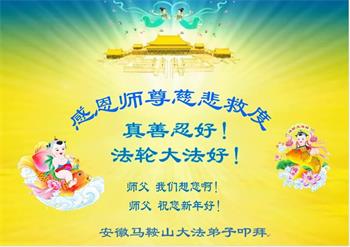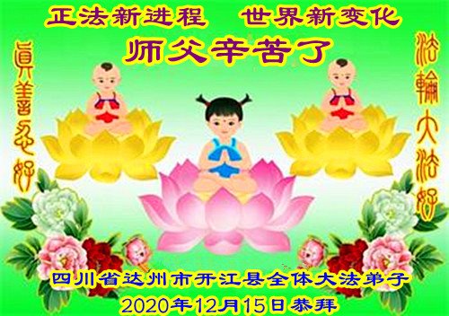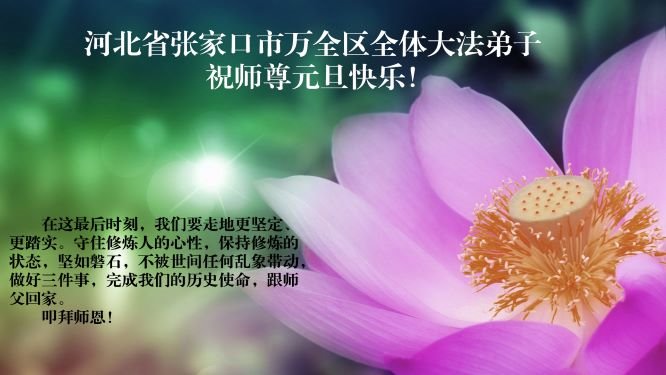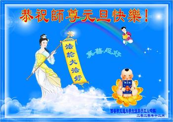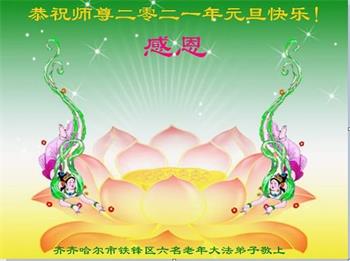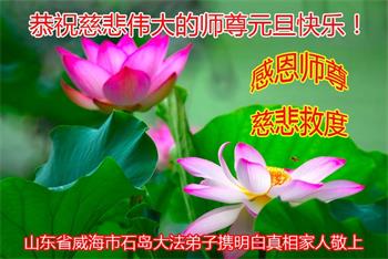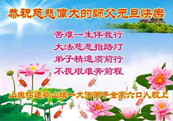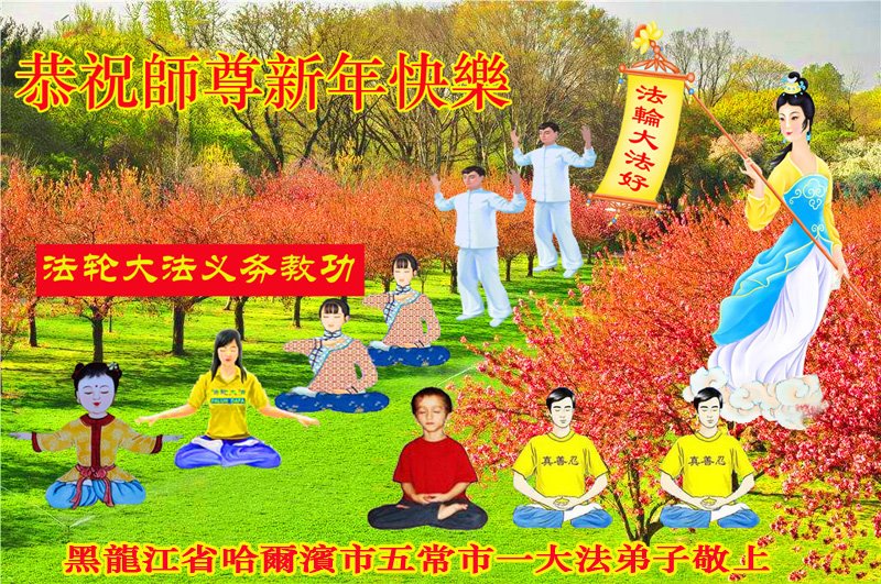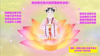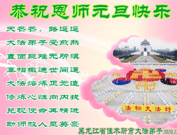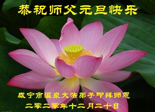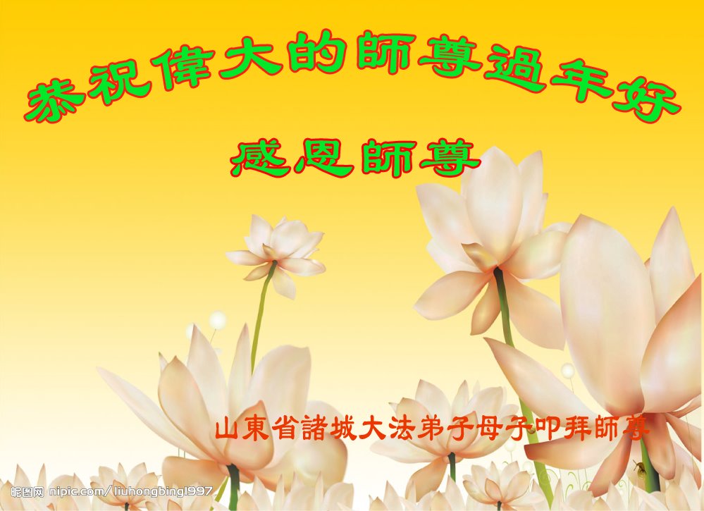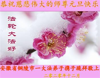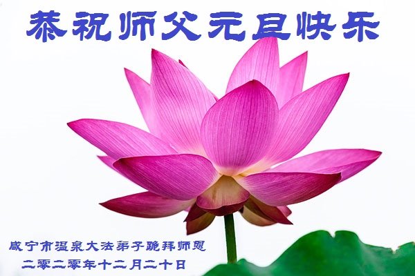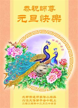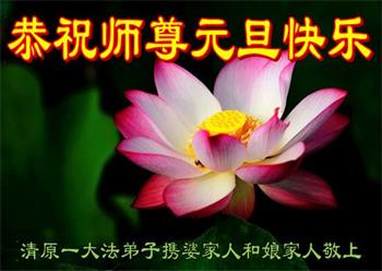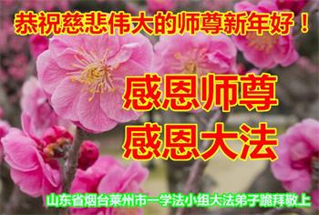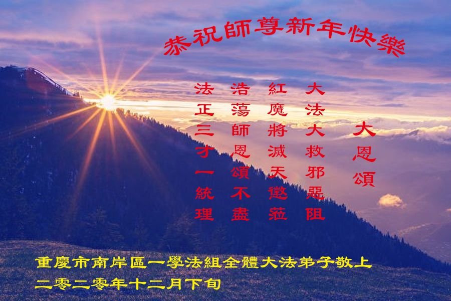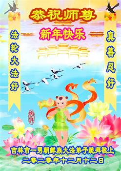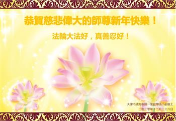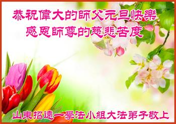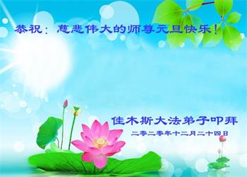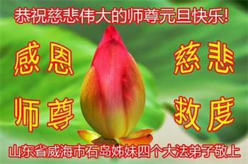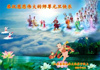 师尊您好!恭祝慈悲伟大师尊元旦快乐!我们是大陆大法弟子学法小组,感恩师尊慈悲苦度,感恩师尊洪恩浩荡!唯有努力修好自己,不辜负师尊的厚望,完成史前大愿,圆满随师还,叩拜师尊。