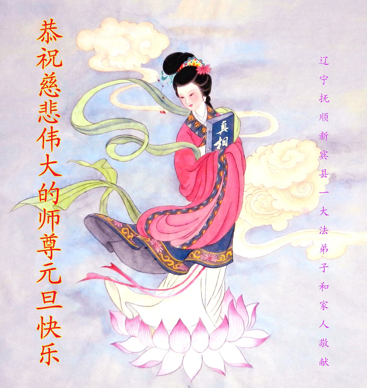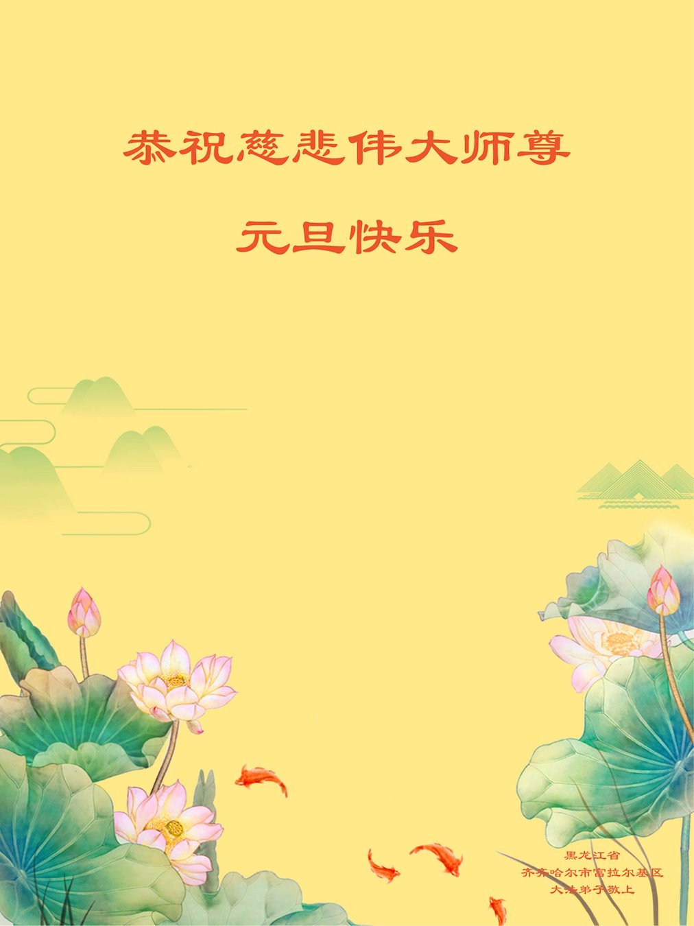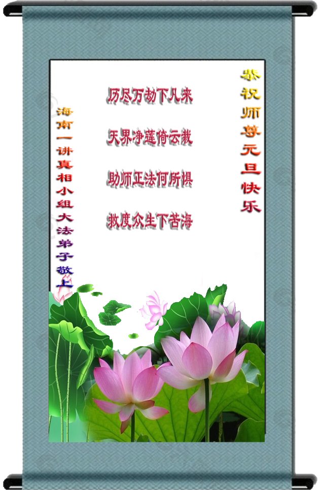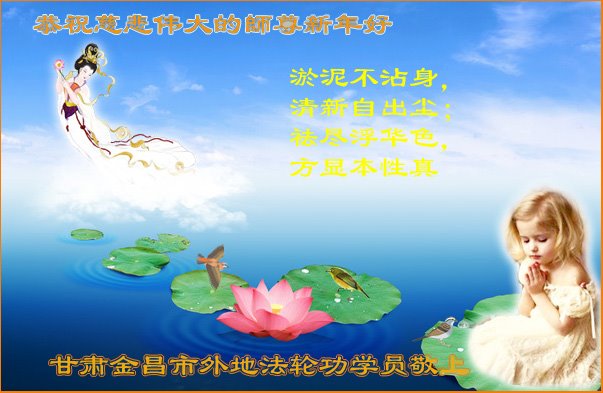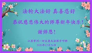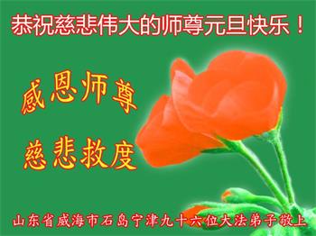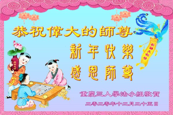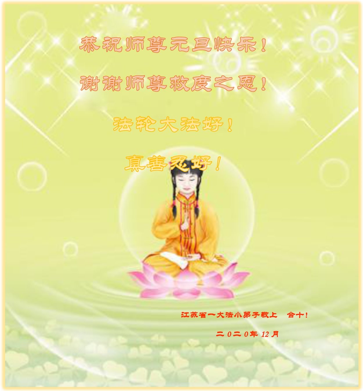 师尊您好!恭祝慈悲伟大师尊元旦快乐!我们是大陆大法弟子学法小组,感恩师尊慈悲苦度,感恩师尊洪恩浩荡!唯有努力修好自己,不辜负师尊的厚望,完成史前大愿,圆满随师还,叩拜师尊。
