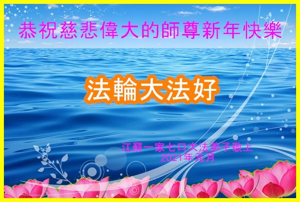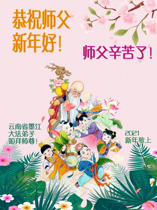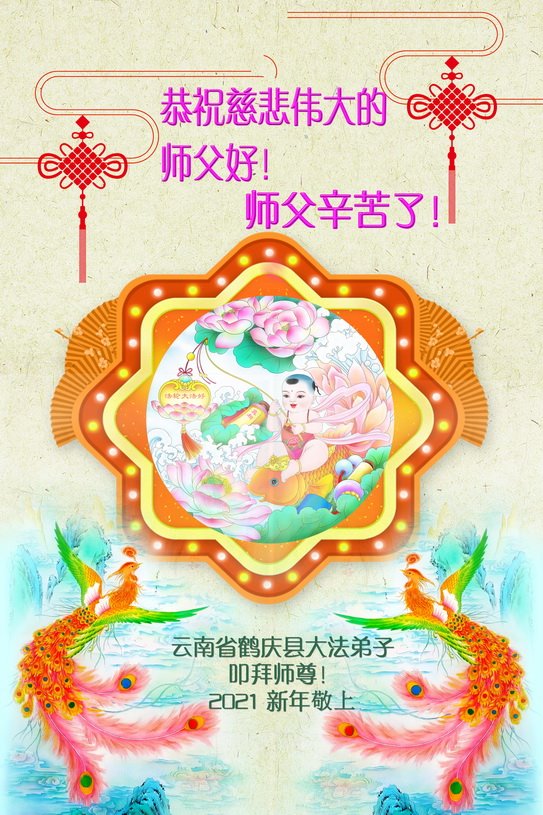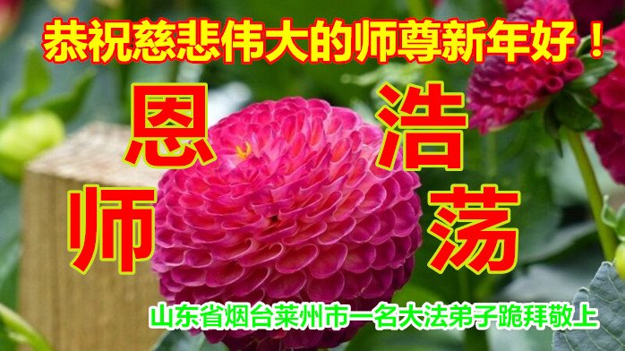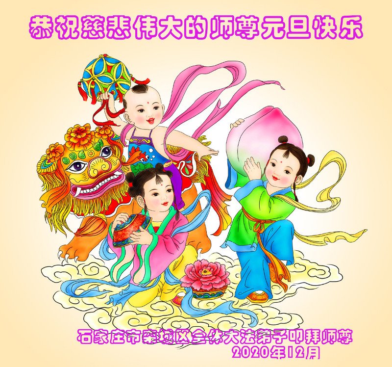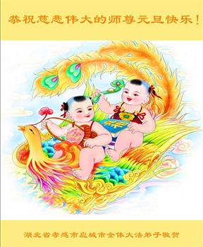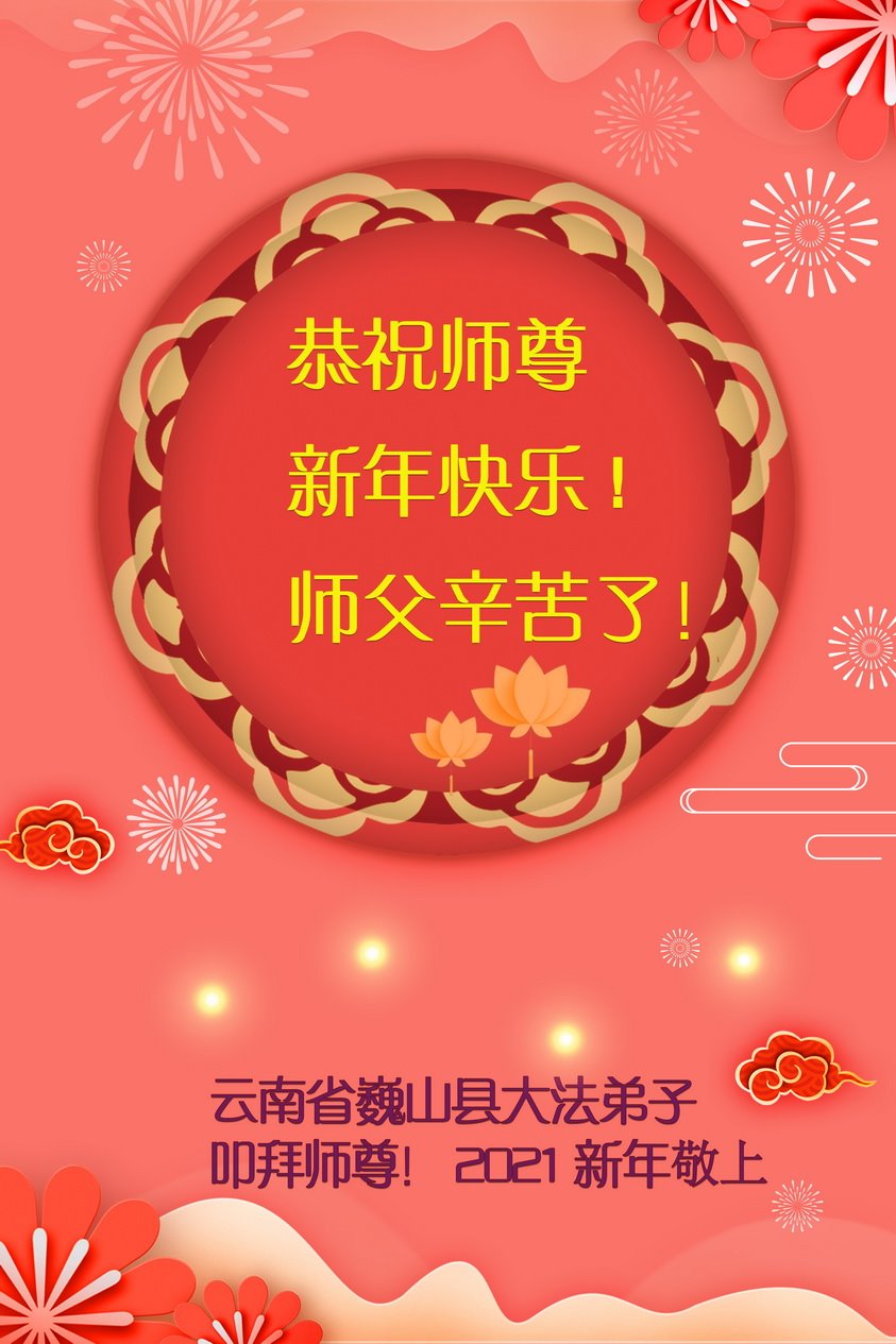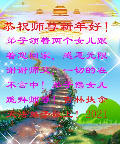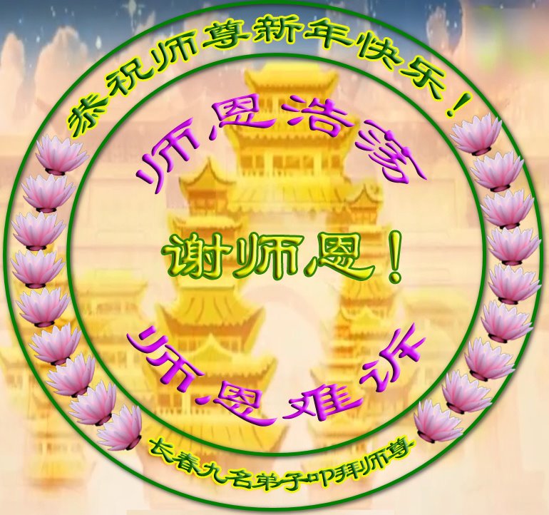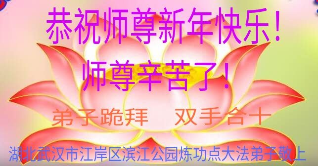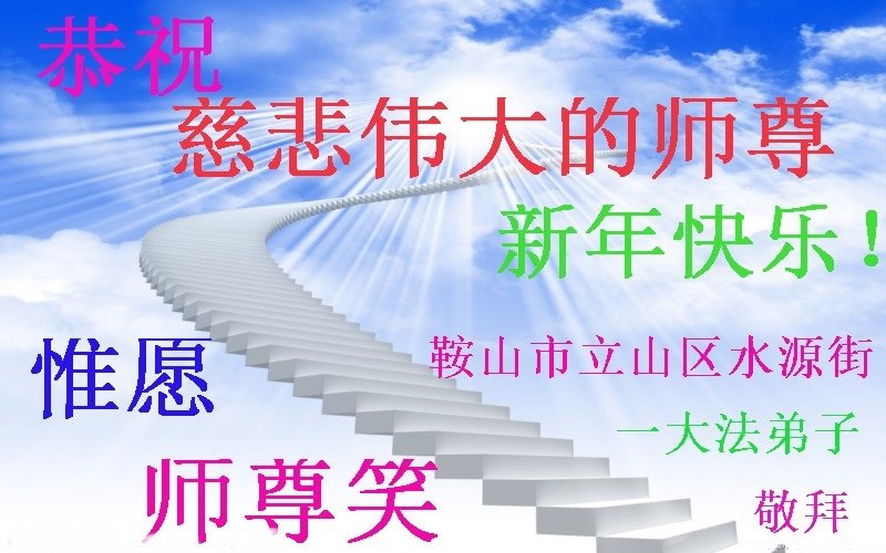 慈悲伟大的师尊新年好!在过去一年中不知师尊为弟子们又承受了多少,就象父母带着学走路的孩子一样,一步一步的走过了二十一年,弟子每一步都离不开师尊的慈悲保护,才能走到了今天,在这正法最后时刻,弟子一定珍惜这值千金值万金时刻,踏踏实实做好三件事,不负师望,不负众望,不负自己的使命,跟师尊回家。谢谢师尊苦度。
