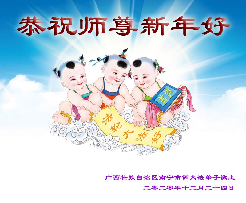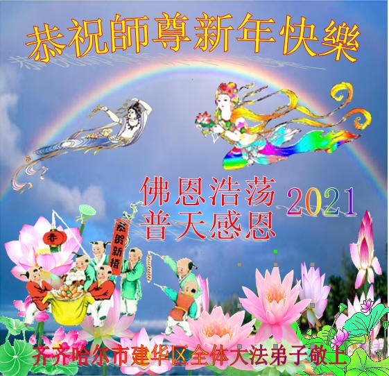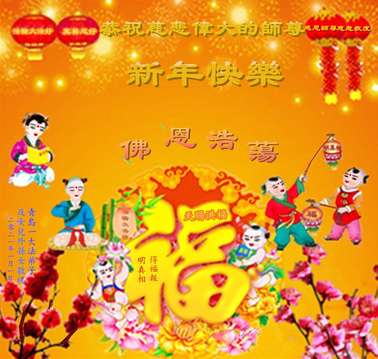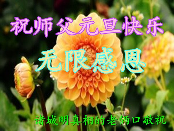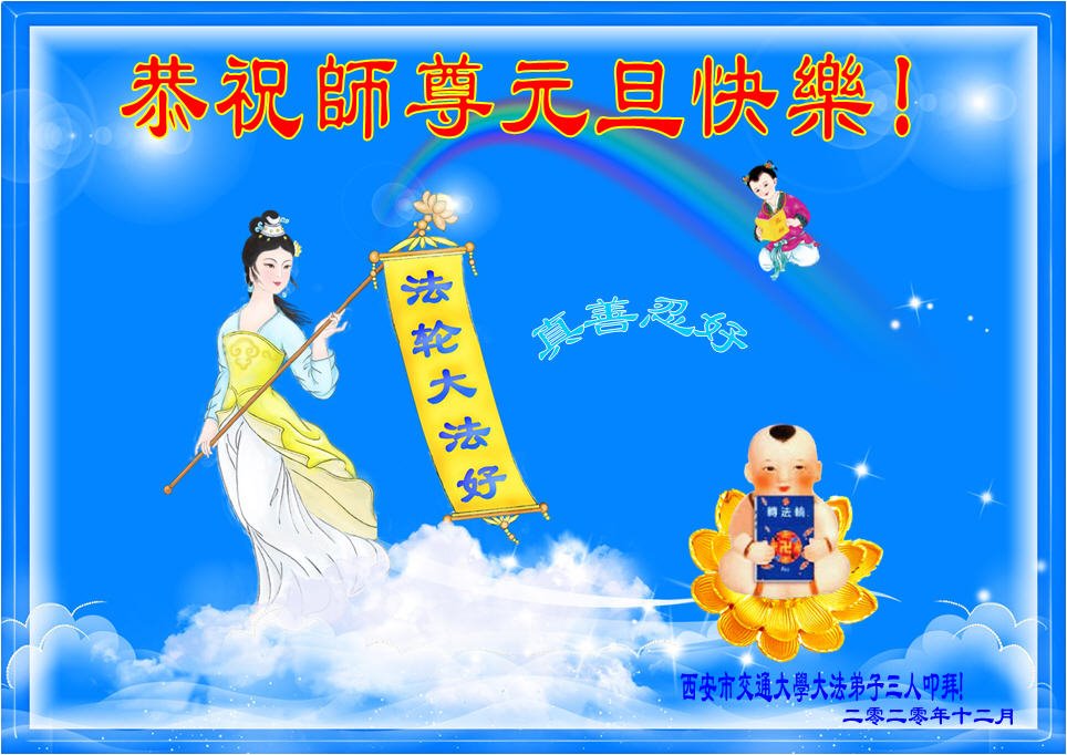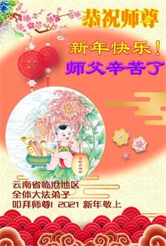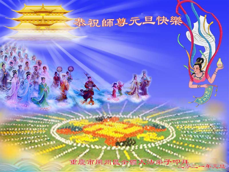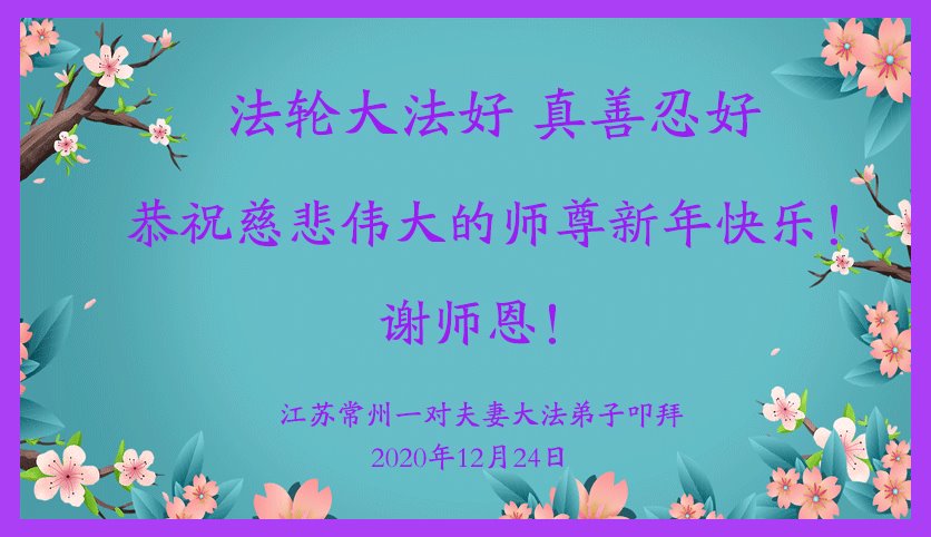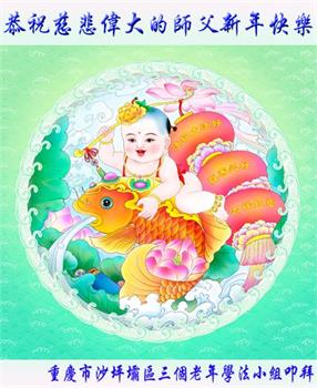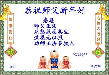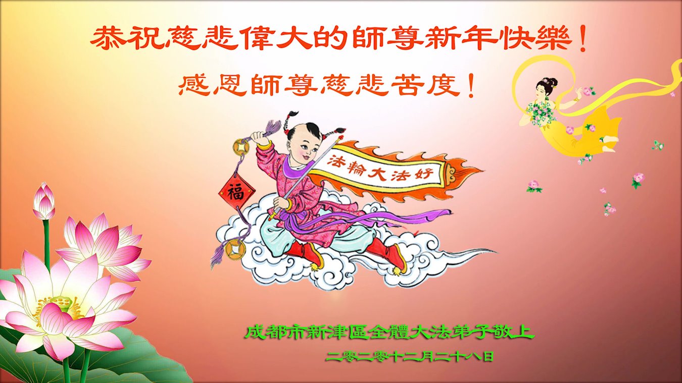 慈悲伟大的师尊新年好!在过去一年中不知师尊为弟子们又承受了多少,就象父母带着学走路的孩子一样,一步一步的走过了二十一年,弟子每一步都离不开师尊的慈悲保护,才能走到了今天,在这正法最后时刻,弟子一定珍惜这值千金值万金时刻,踏踏实实做好三件事,不负师望,不负众望,不负自己的使命,跟师尊回家。谢谢师尊苦度。