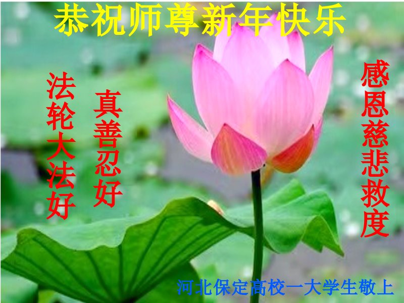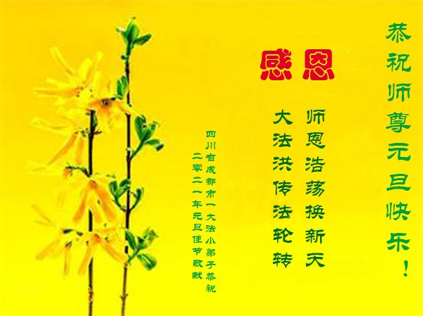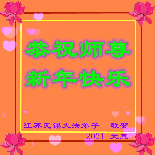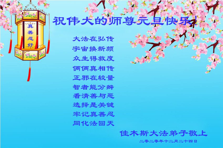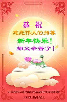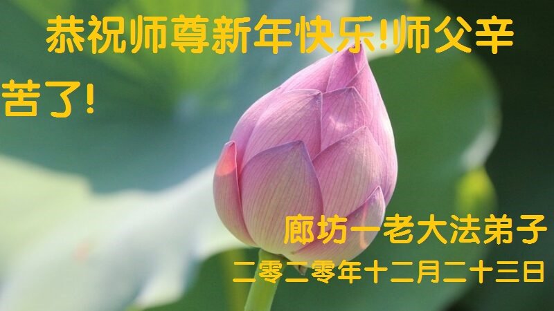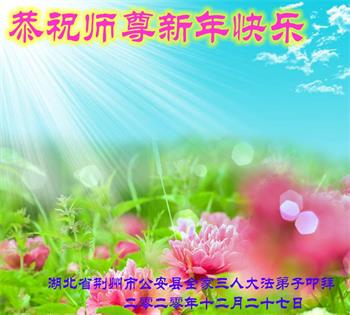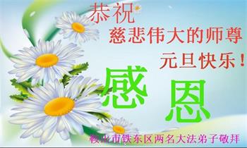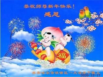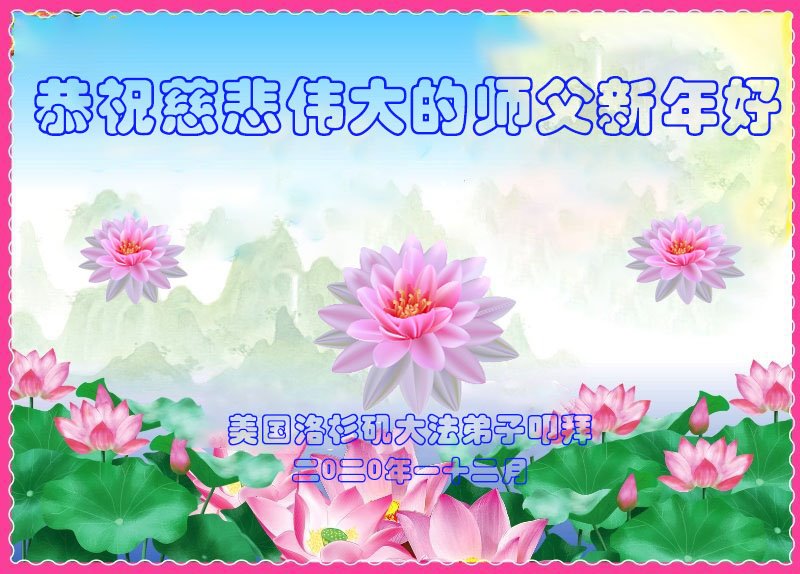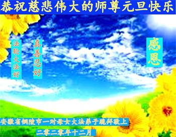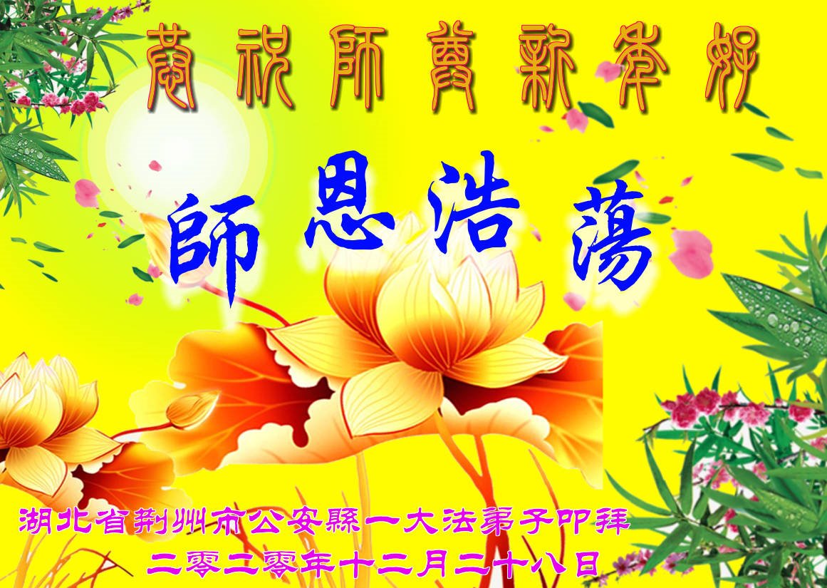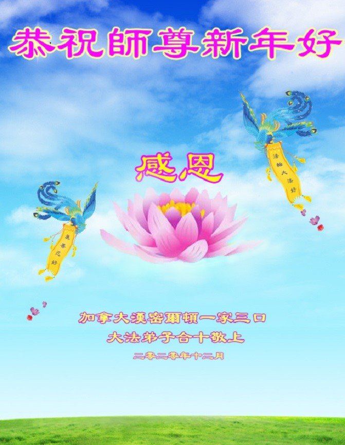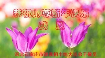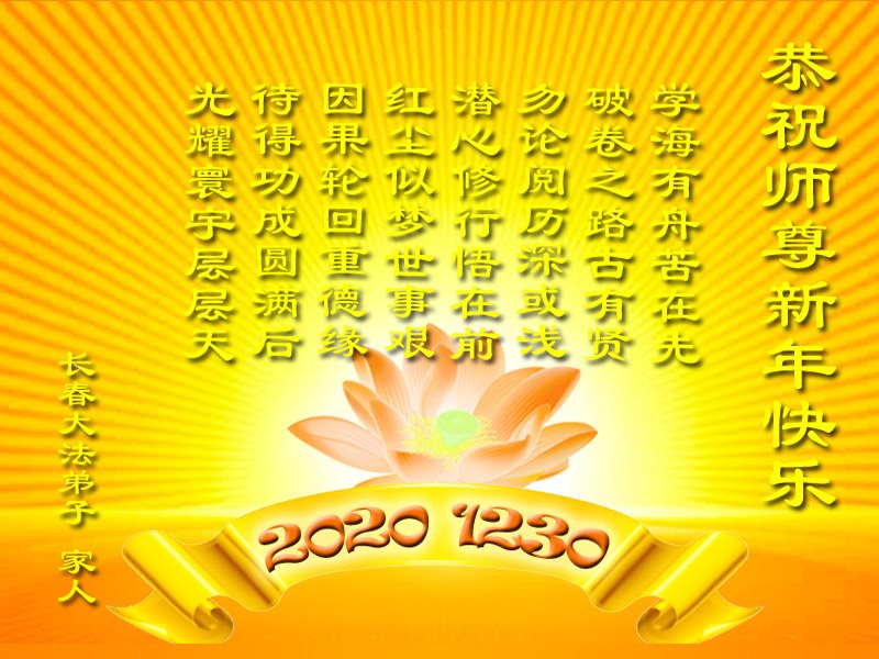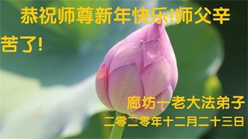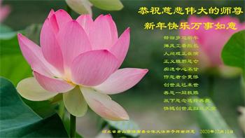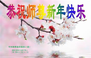 时间过得真快,在师父慈悲的看护下,弟子又走过了一年。回首过去的二十多年修炼中,想起师父的慈悲保护,弟子切身感受的心久久不能平静。激动的心情常常泪流满面,有多少话想对师父说。千言万语汇成一句话,感恩师父,感恩大法!在此新年之际,弟子和学法小组的大法弟子们恭贺师父新年快乐!