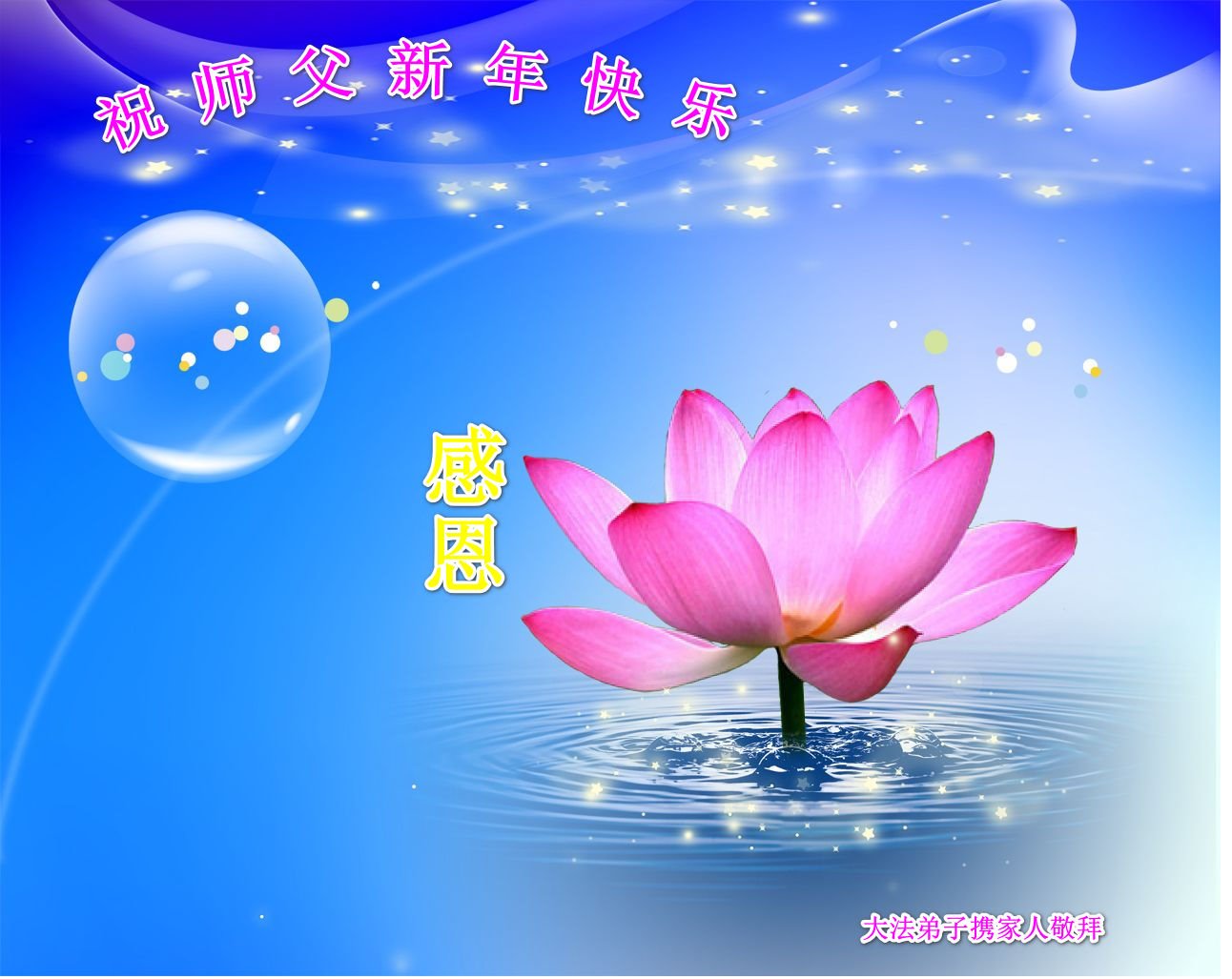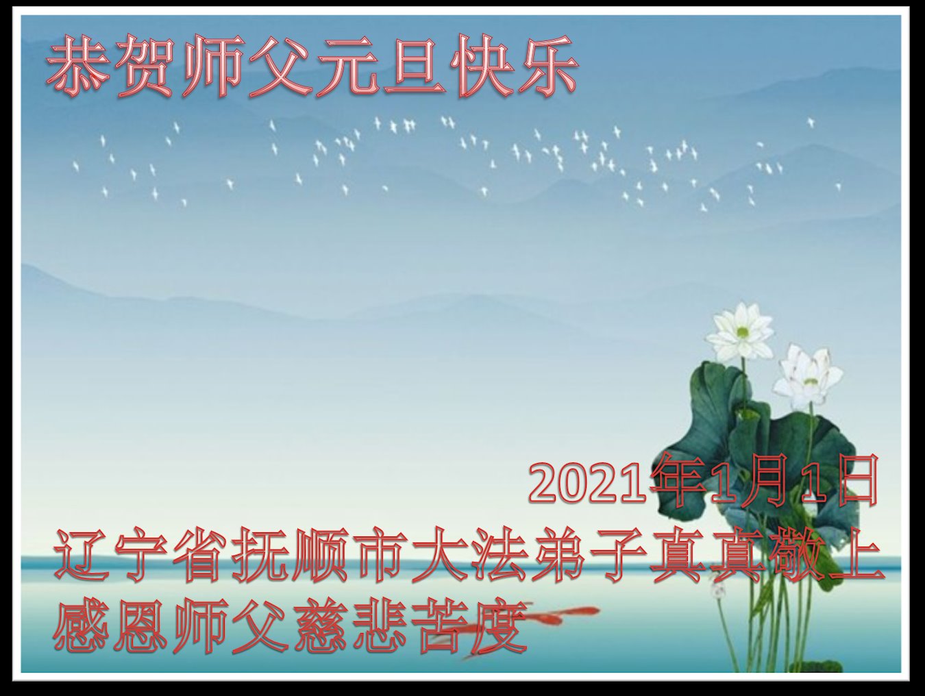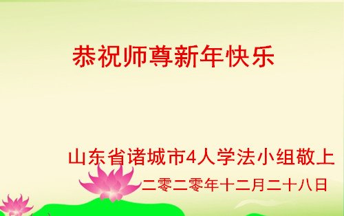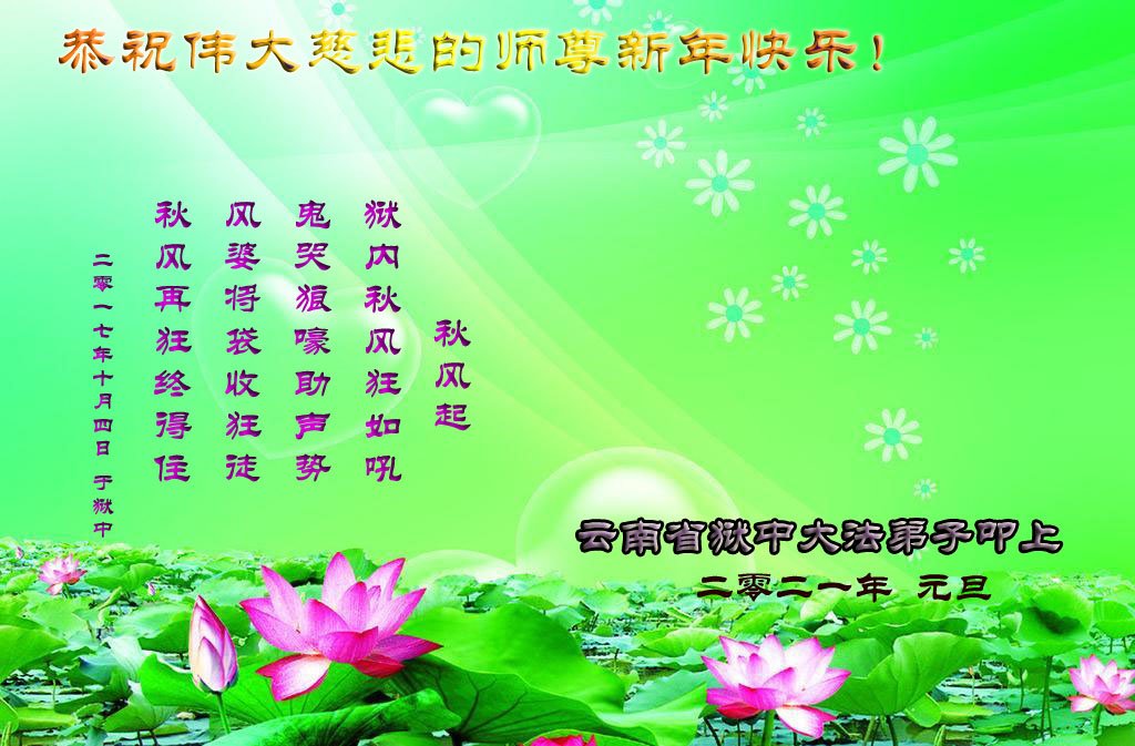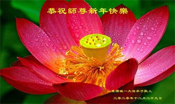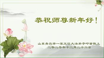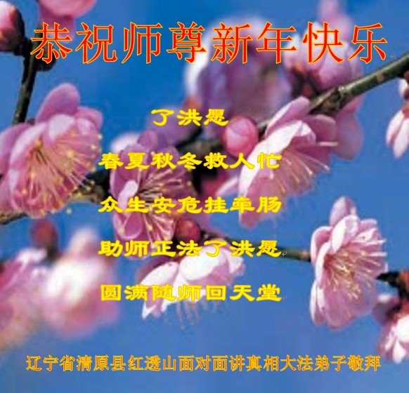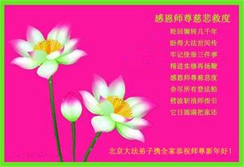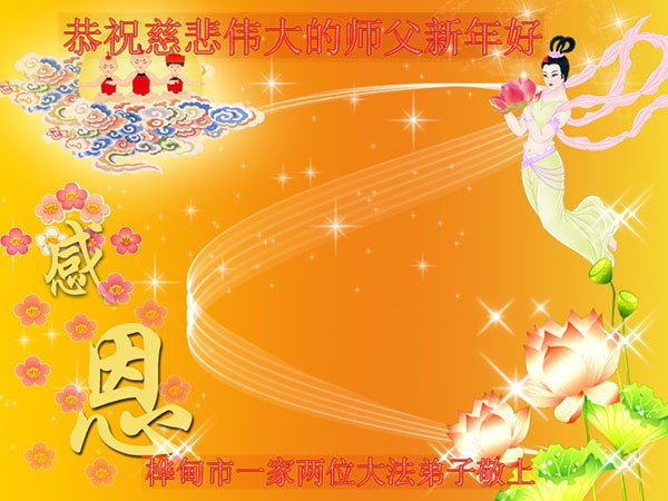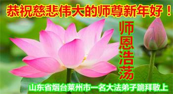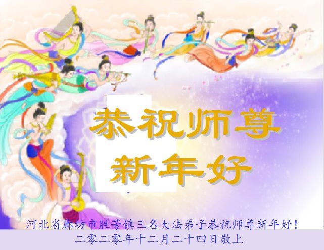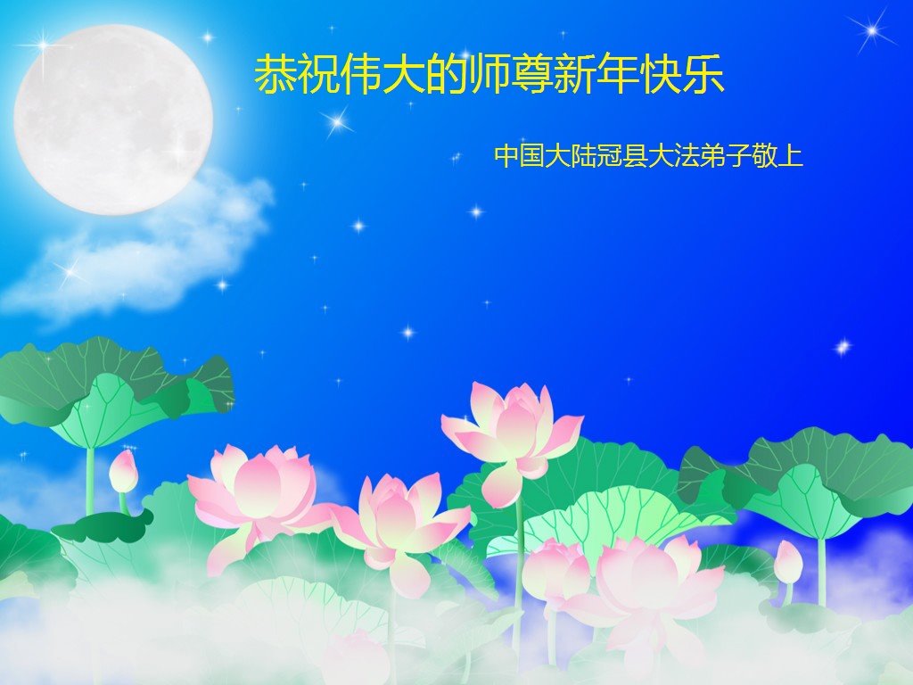 时间过得真快,在师父慈悲的看护下,弟子又走过了一年。回首过去的二十多年修炼中,想起师父的慈悲保护,弟子切身感受的心久久不能平静。激动的心情常常泪流满面,有多少话想对师父说。千言万语汇成一句话,感恩师父,感恩大法!在此新年之际,弟子和学法小组的大法弟子们恭贺师父新年快乐!