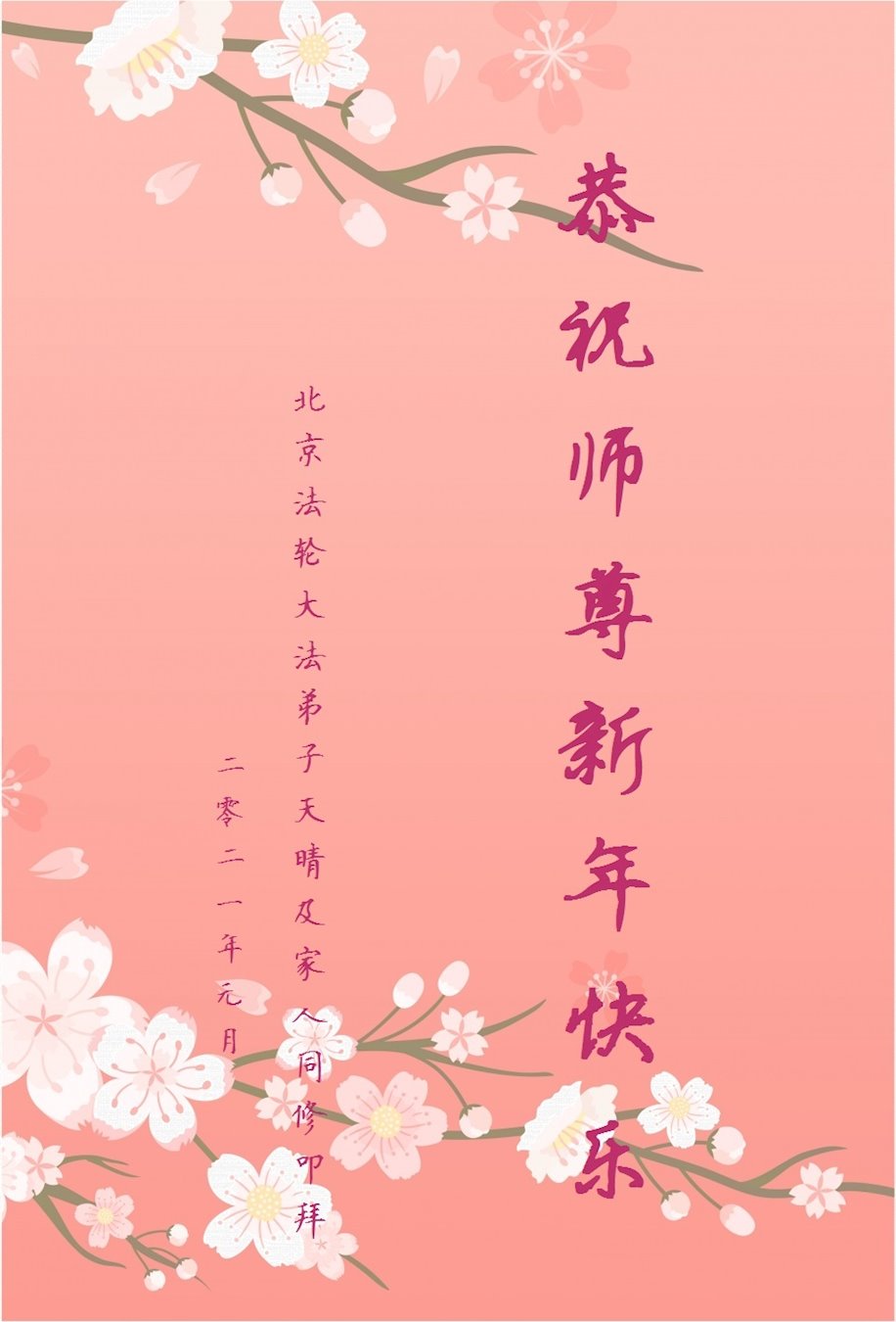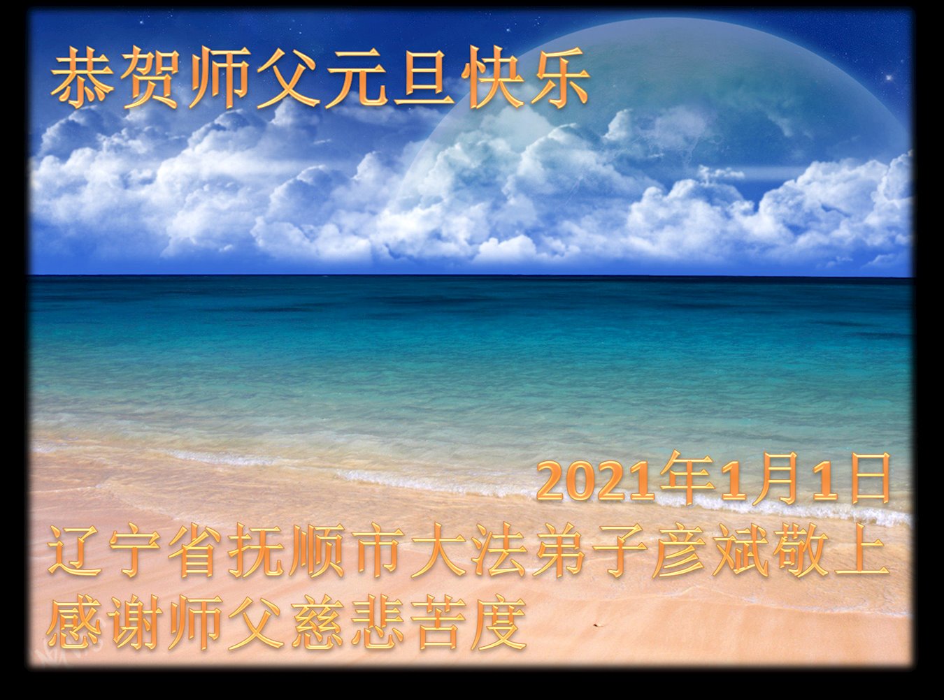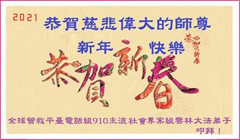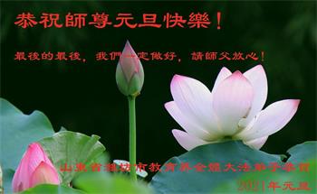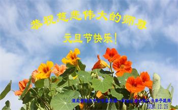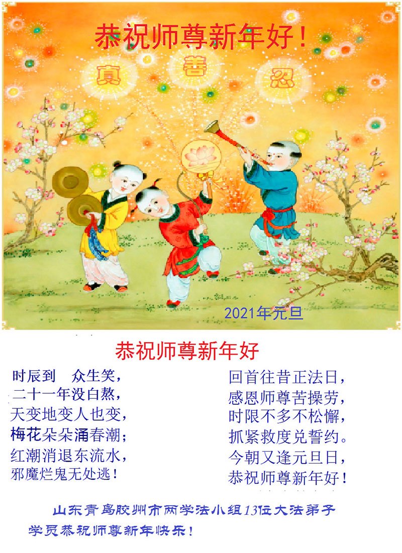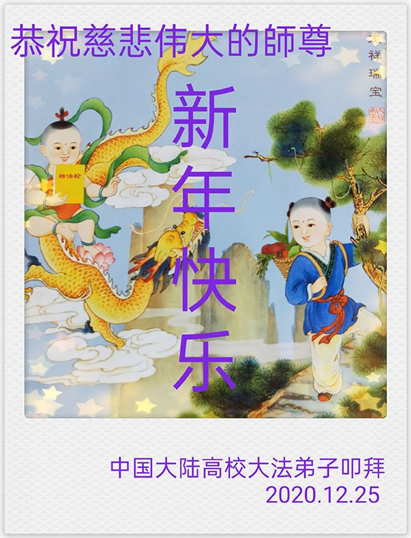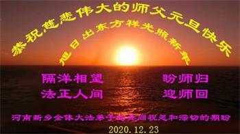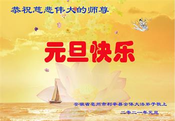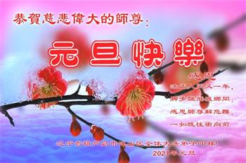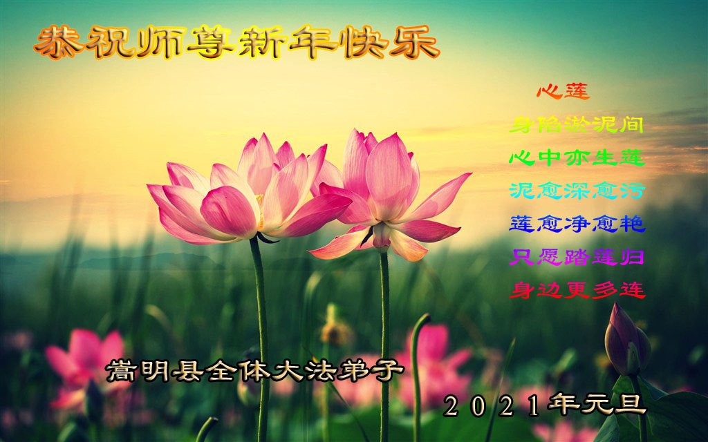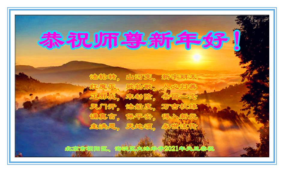2021年元旦来临,中国大陆30个省和自治区的学法小组的大法弟子们恭祝慈悲的师父元旦快乐!大法弟子们表示,会在最后的修炼路上把握有限时间勇猛精進、兑现誓约,迎来大法的光辉普照天宇人间!