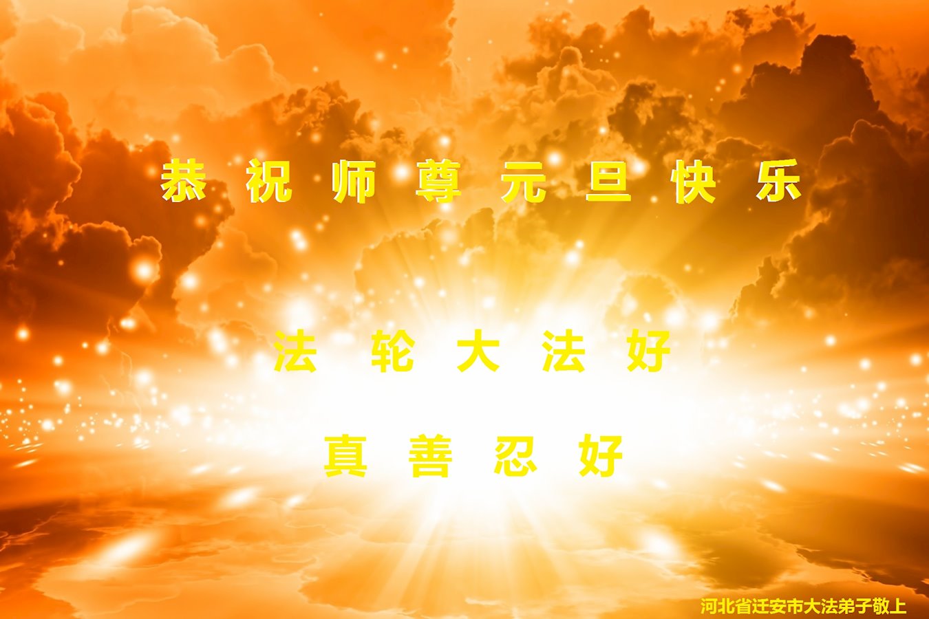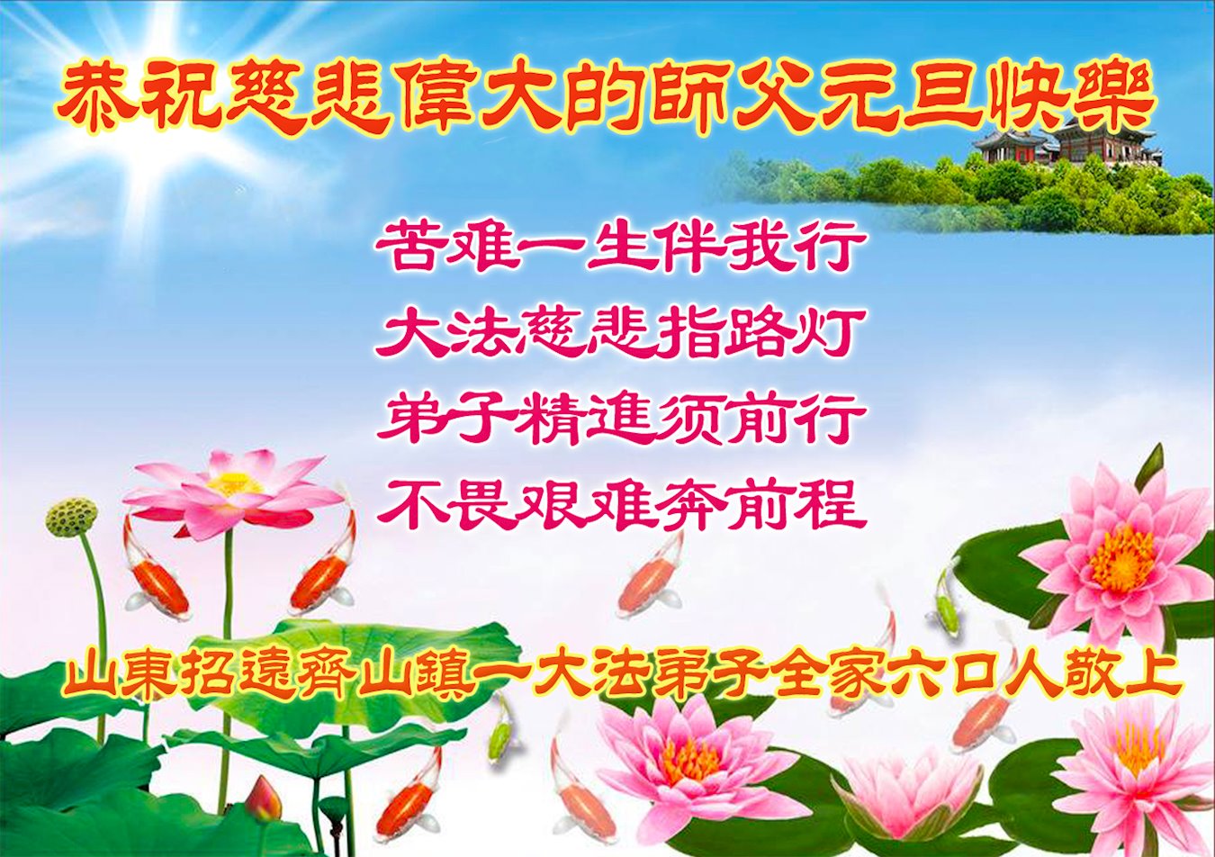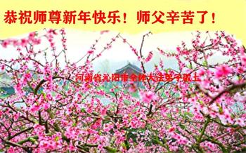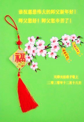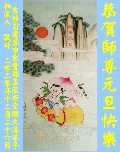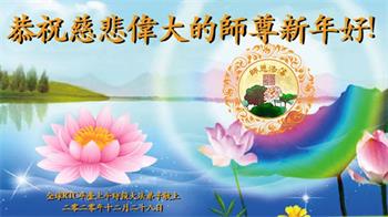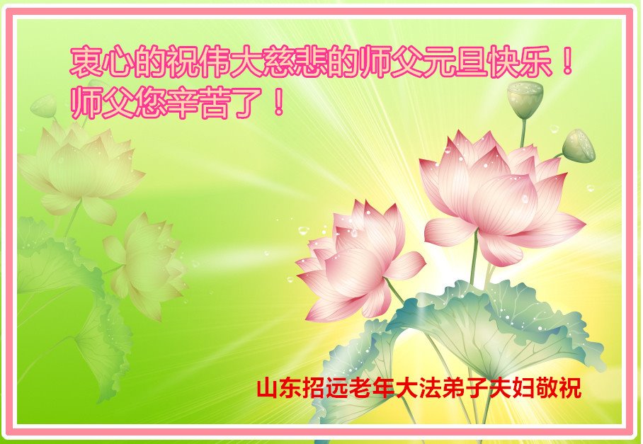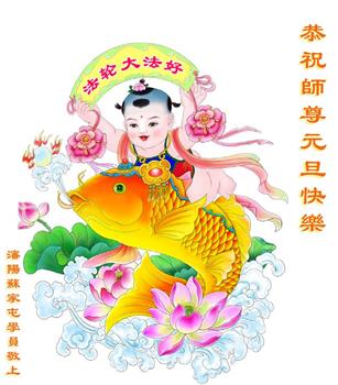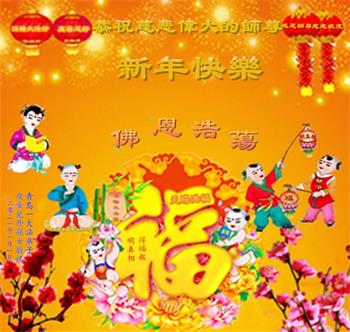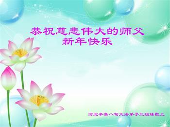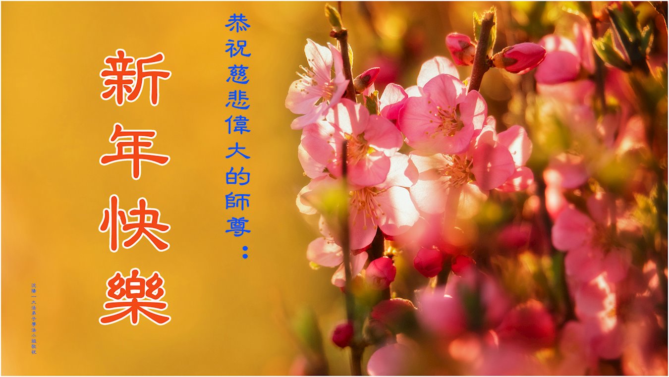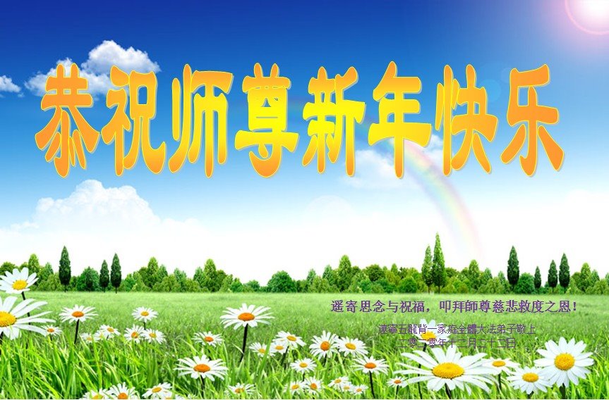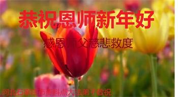 在这佛光普照的日子里,在这与师尊正法同在的伟大、殊胜的日子里,在这最后的选择时期,在这历史更新的短暂时光中,在这新的一年来临之日:弟子恭祝慈悲伟大的师尊新年快乐!师尊您辛苦了!弟子向师尊九叩首!
