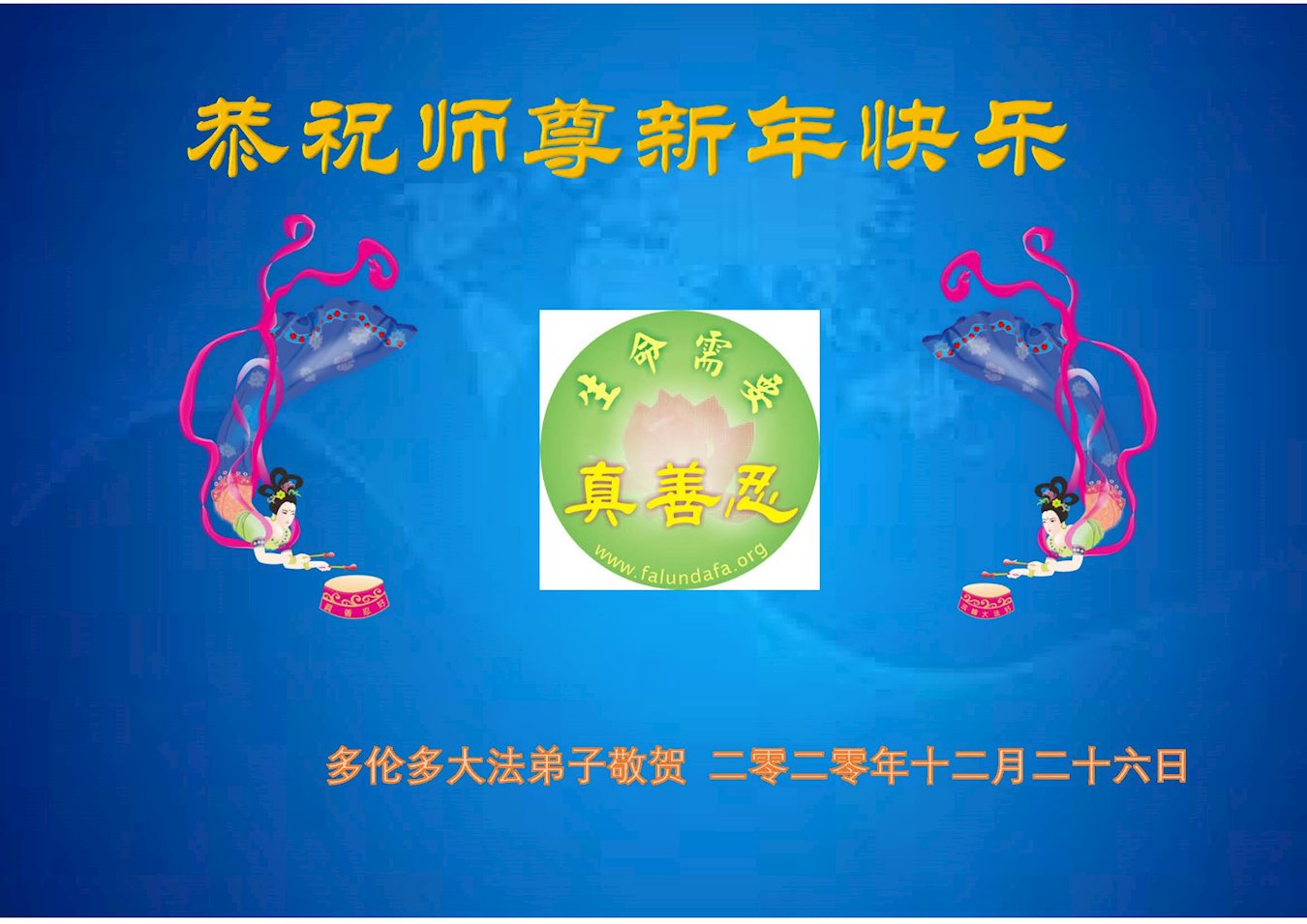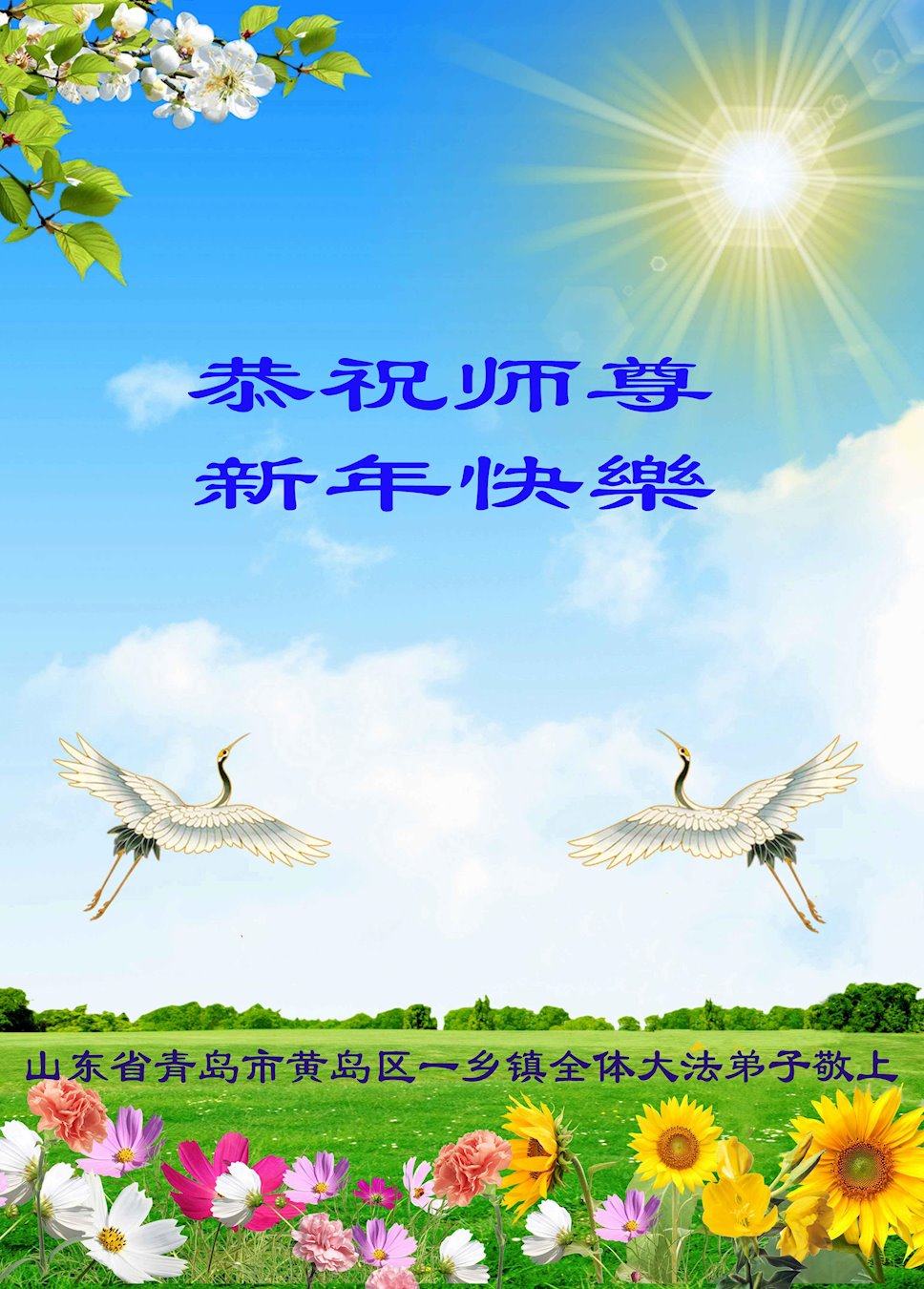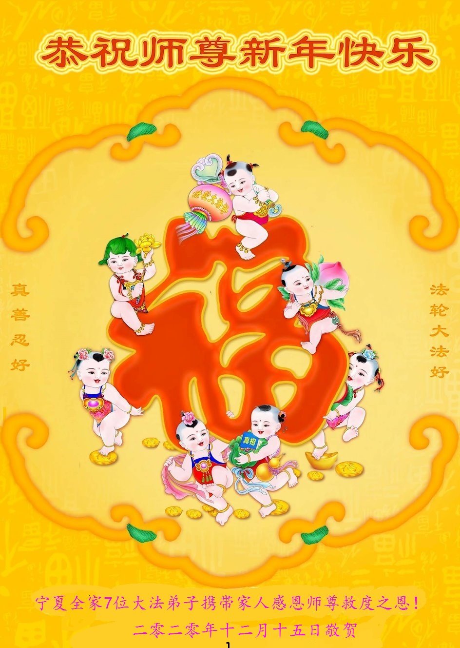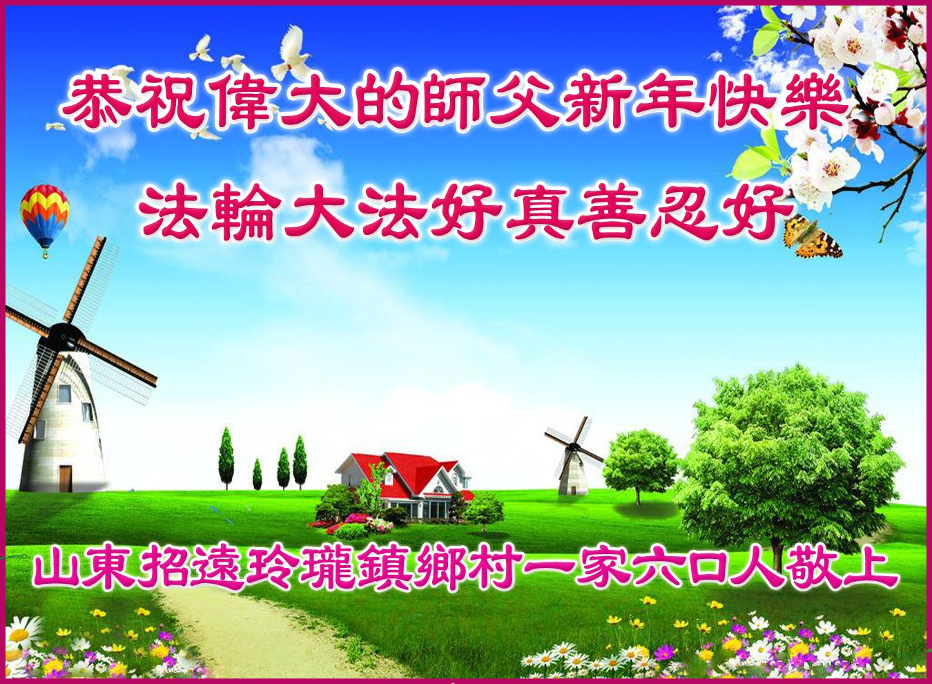 在这佛光普照的日子里,在这与师尊正法同在的伟大、殊胜的日子里,在这最后的选择时期,在这历史更新的短暂时光中,在这新的一年来临之日:弟子恭祝慈悲伟大的师尊新年快乐!师尊您辛苦了!弟子向师尊九叩首!