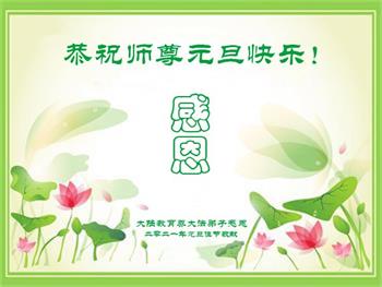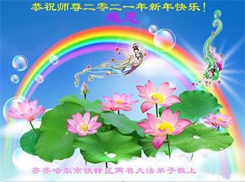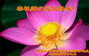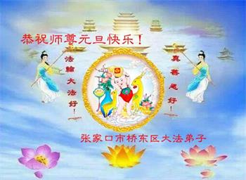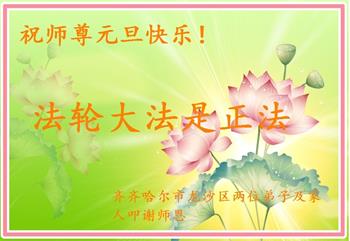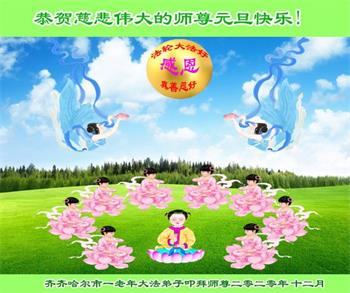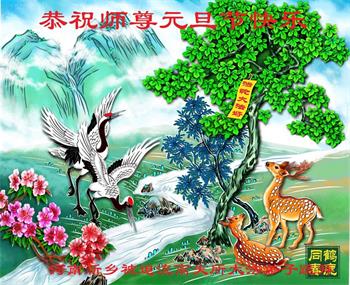 新疆石河子市大法弟子感谢师尊的慈悲救度,弟子们会努力做好三件事,救度众生。在此祝愿师尊元旦快乐!
