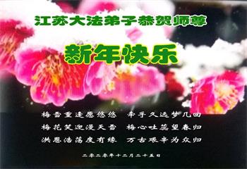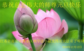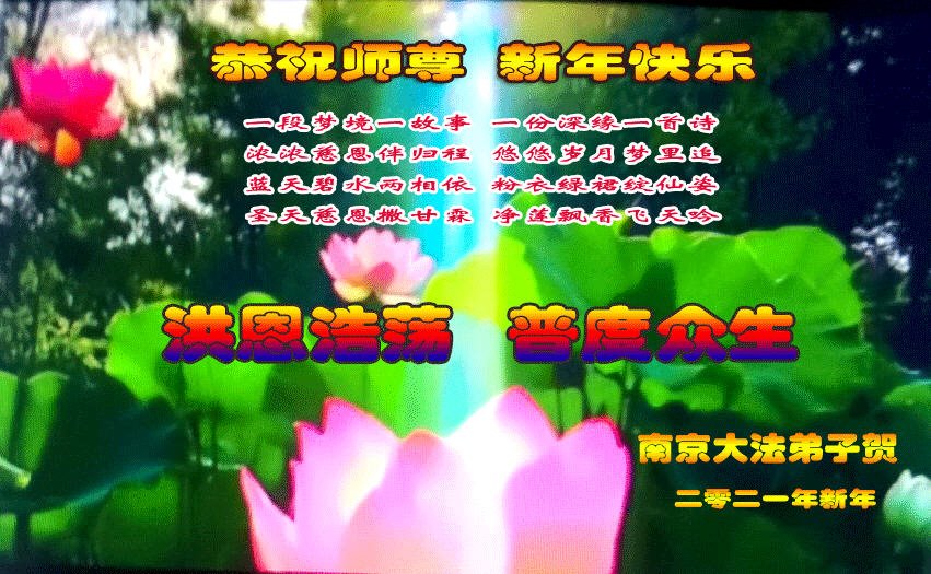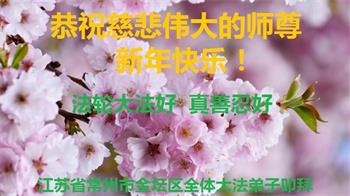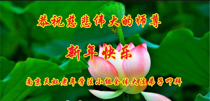 江苏省南京建邺区一学法小组全体大法弟子恭祝师父新年好!感恩神圣伟大的师父慈悲救度!感恩神圣伟大的师父慈悲保护!我们学法小组全体大法弟子齐声恭祝师父新年好!
