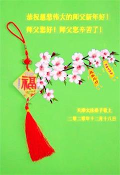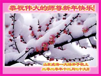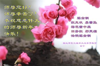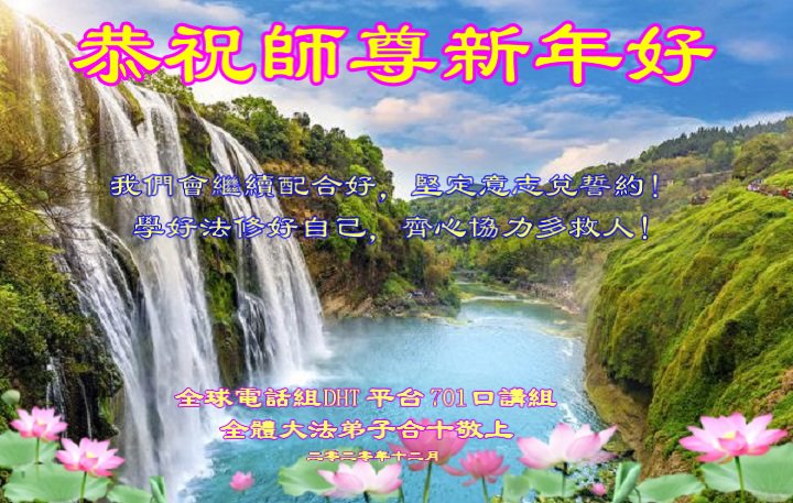 恭祝师尊新年快乐!叩谢师尊的救度之恩!在这一年里,我们小组的大多数同修也遭到了邪*党-不同程度上的骚扰,但都没有被吓倒,而且越来越坚定。请师父放心,在末后之末的有限时间里,我们一定会更加精進,尽快修好自己,多救人,完成使命圆满随师还!