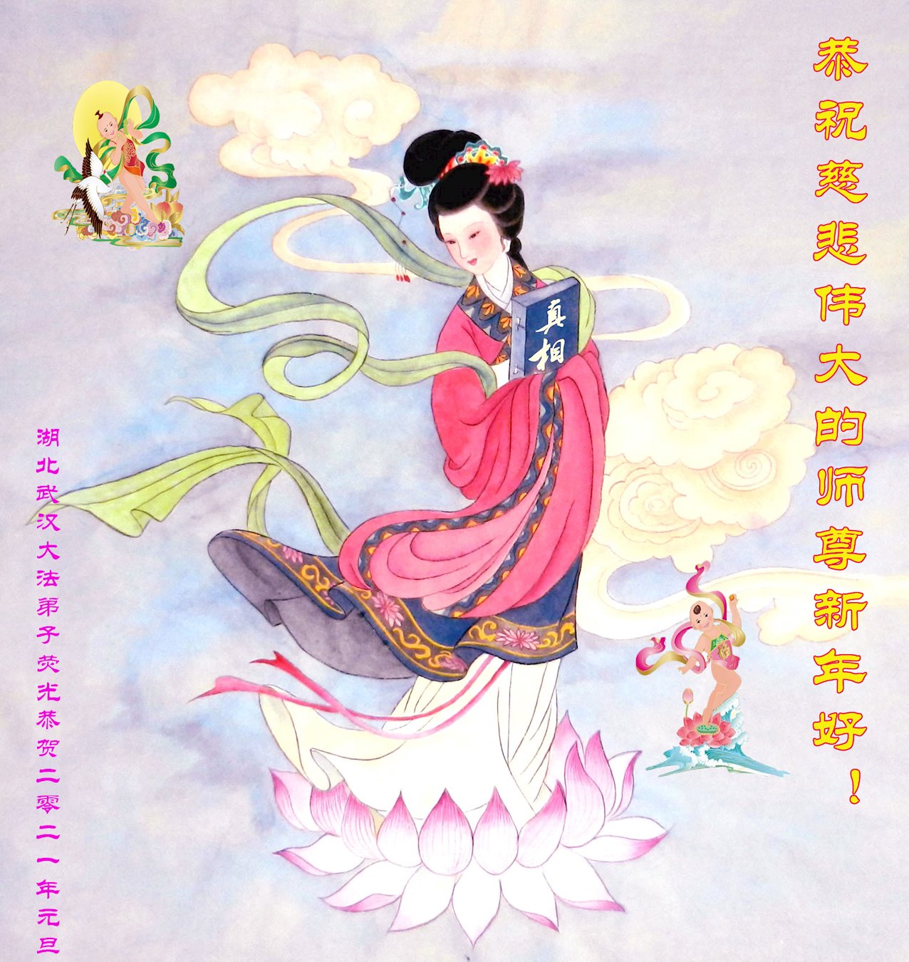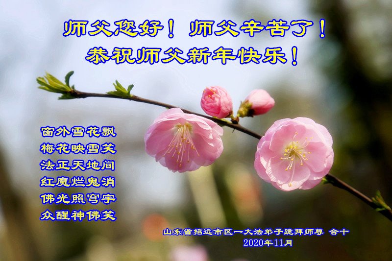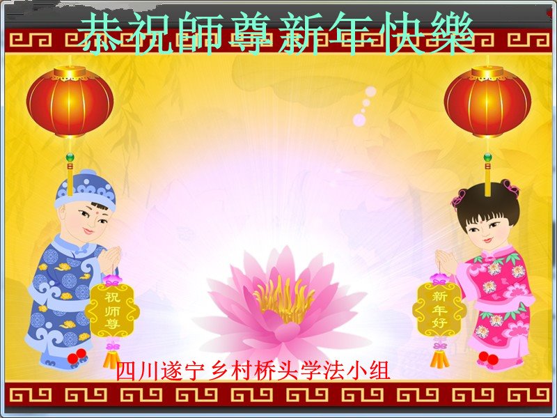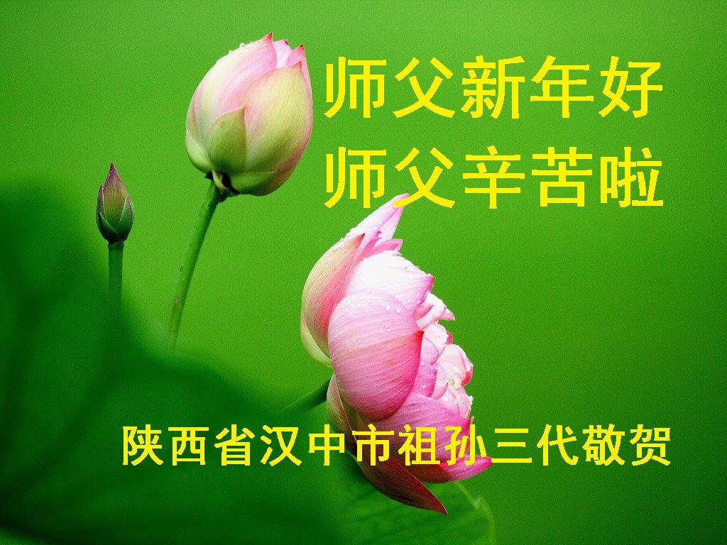 在新的一年,我们要形成整体,向内找,互相配合,修自己,多救人,跟师父回家。弟子叩拜师父!