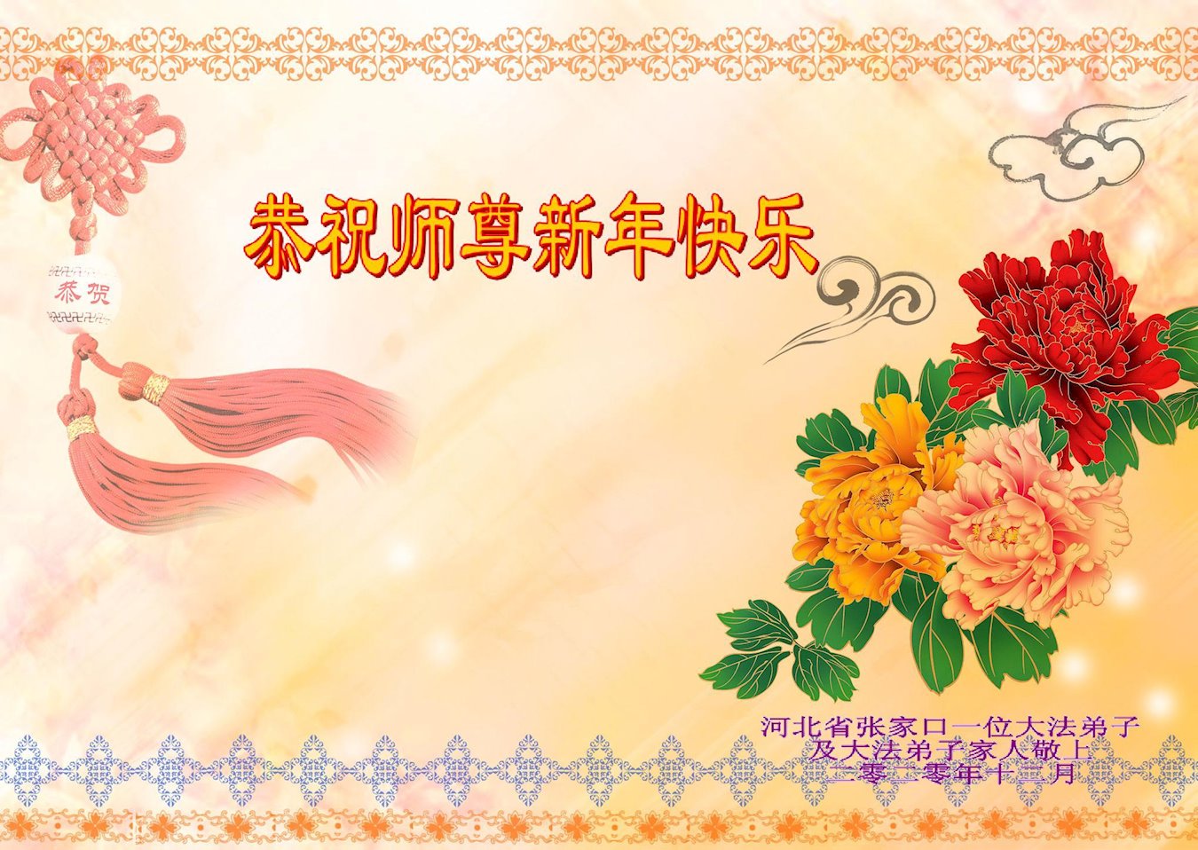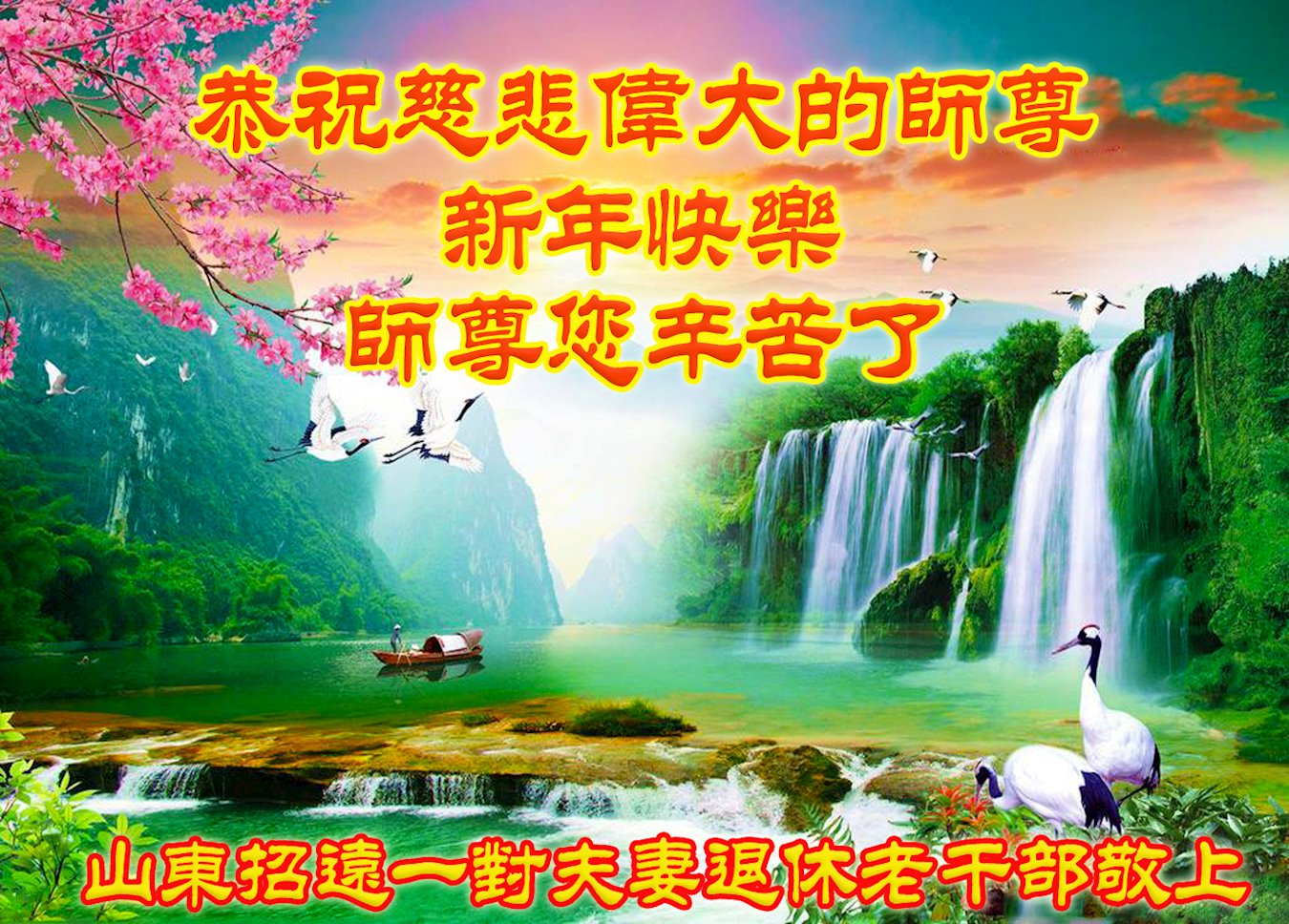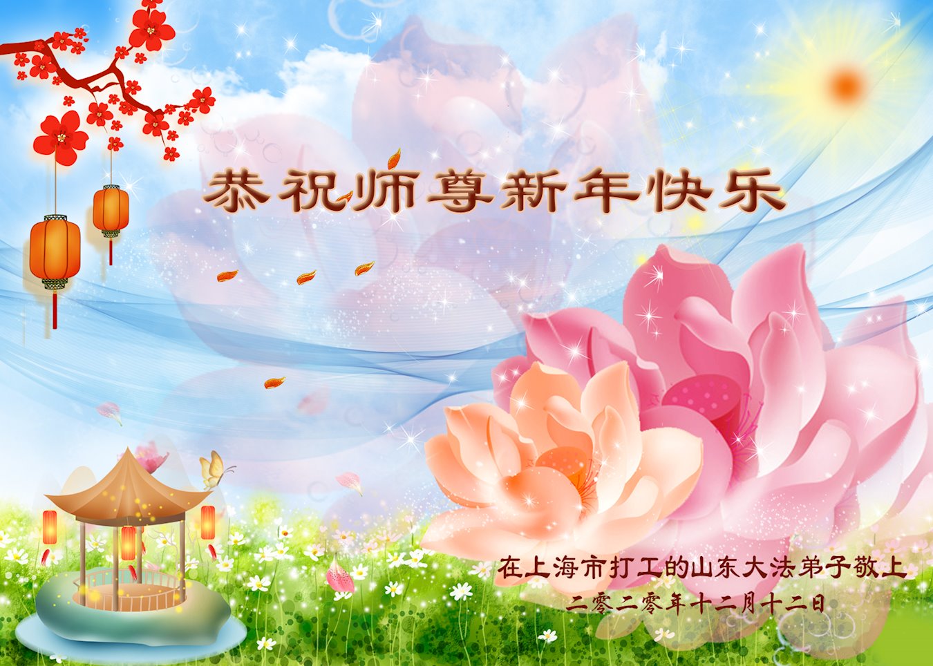 恭祝慈悲伟大的师尊新年快乐!在新年到来之际,弟子感恩无尽言!