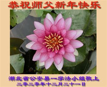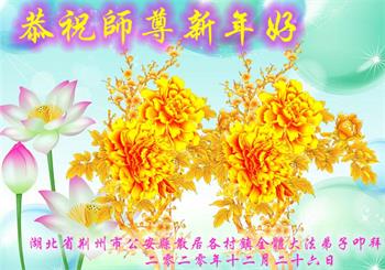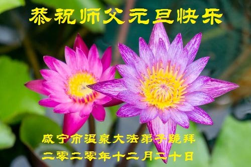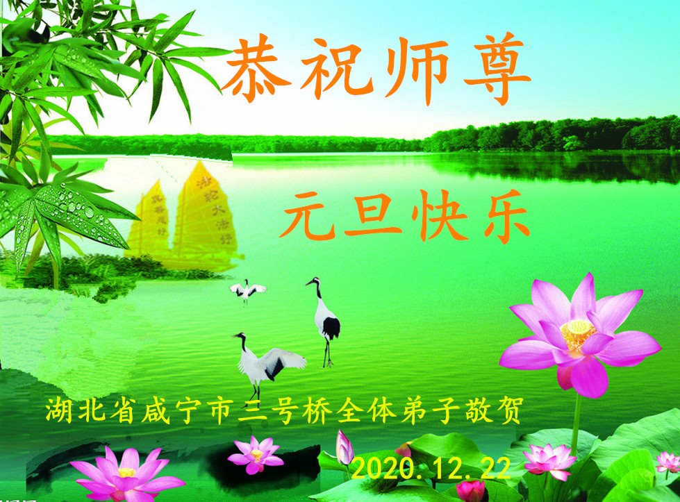 湖北省咸宁市温泉区三号桥一学法小组全体大法弟子恭祝师尊元旦快乐!弟子们一定听师父的话,多学法、学好法,相互配合,默默圆容整体所要的,做好三件事,圆满随随师还。谢谢师父慈悲救度!