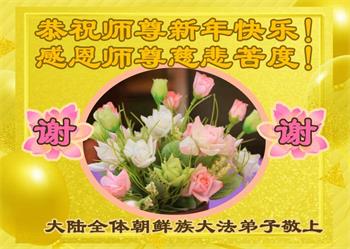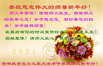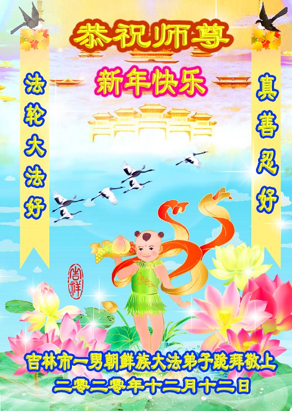 师父,谢谢您二十一年里风风雨雨中对弟子的慈悲保护,没有师父的保护弟子走不到今天。在新的一年里,延吉市大法弟子五人学法小组一定会更加精進,学好法,遇事向内找,做好三件事,跟上正法進程,能够早日与师父团圆。