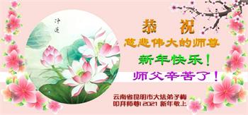 当二零二一年新年即将到来之际,昆明一学法小组全体大法弟子,恭祝伟大慈悲的师尊新年快乐!