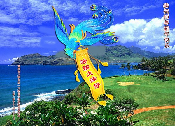 大海承载着师尊的慈悲,苍穹闪烁着师尊的智慧,愿师尊法像前的缕缕香烟伴随着晨炼的音乐和郎朗的学法声,给师尊送去我们学法小组的弟子们无限的感恩:师尊辛苦了!问候师尊新年快乐!