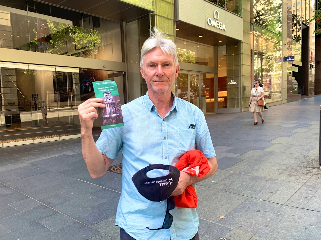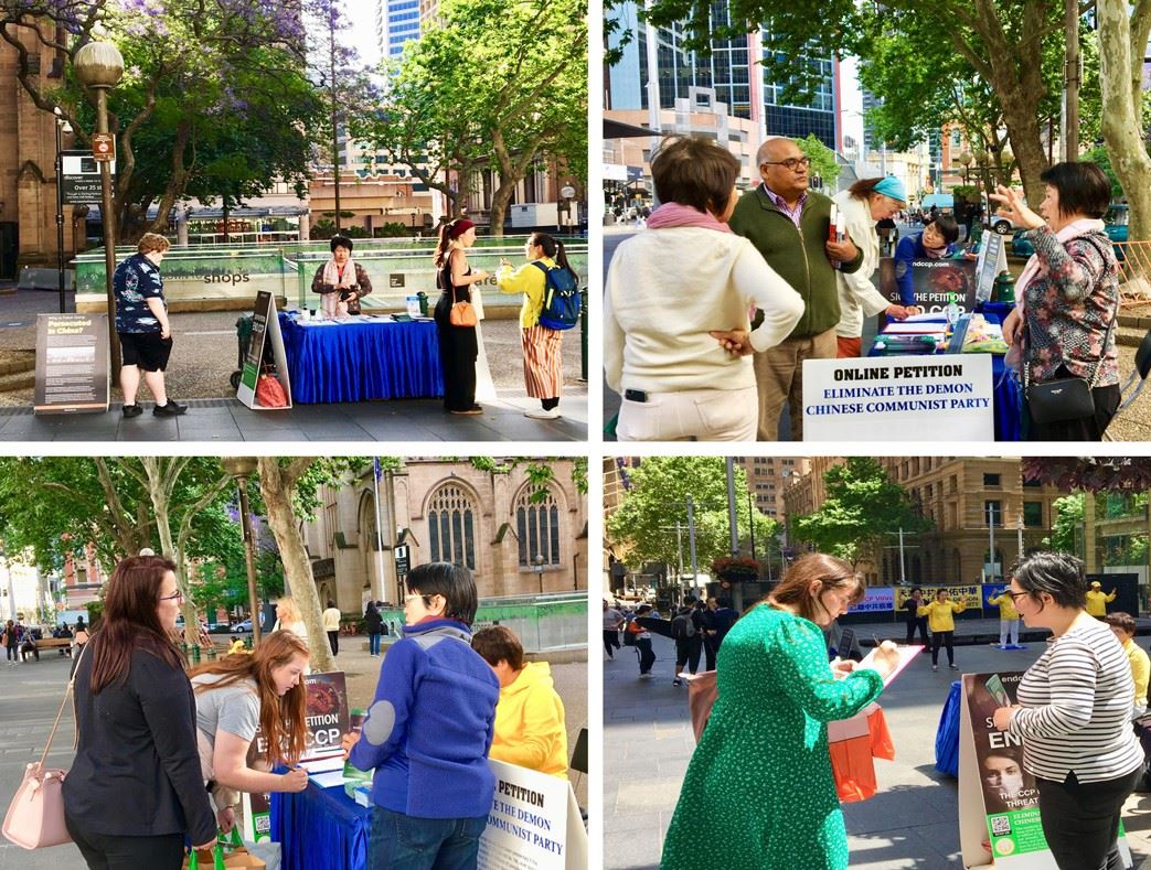 ![]() 图2:民众在悉尼市政厅(Town Hall)前驻足了解真相签署“解体中共”请愿书。 |