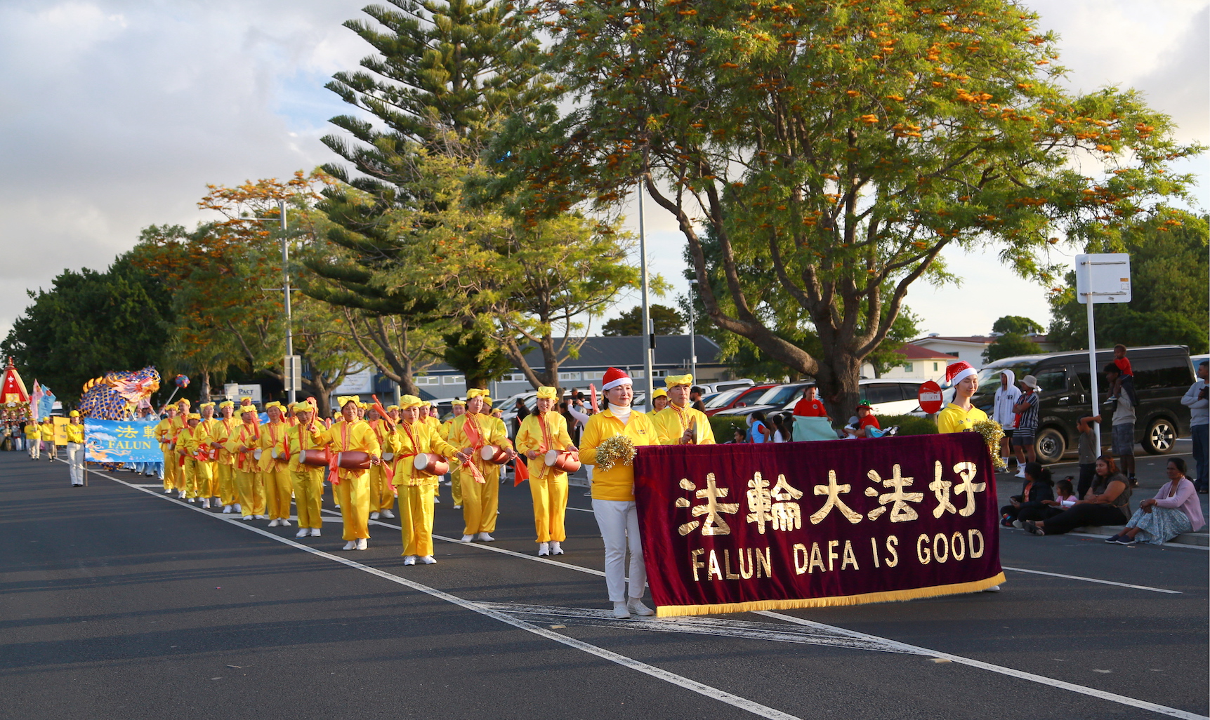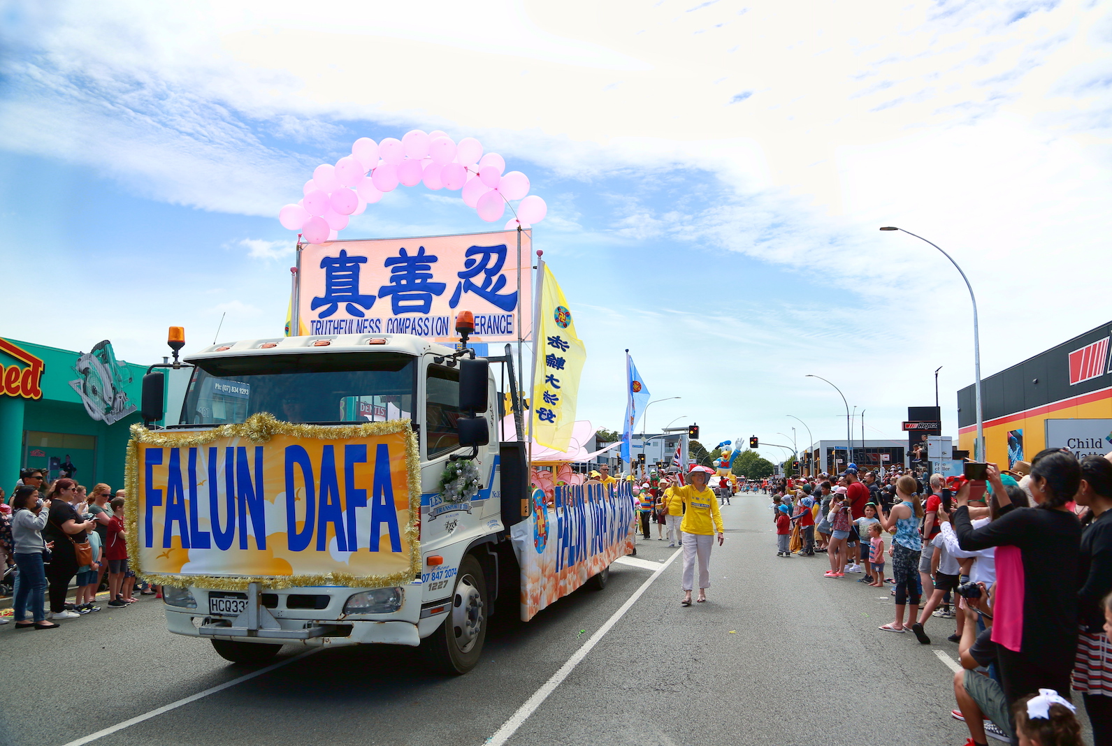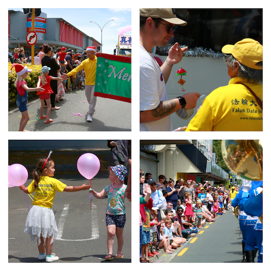 新西兰著名的新闻网站Stuff还报道了在北帕(Palmerston North)的圣诞游行,照片中一位法轮功学员扮作的美丽仙女端坐在莲花上,向人群挥手致意,小朋友们都非常开心。法轮功学员们不仅让人们看到了大法的美好和纯净,更为当地民众带来了美好祝愿。