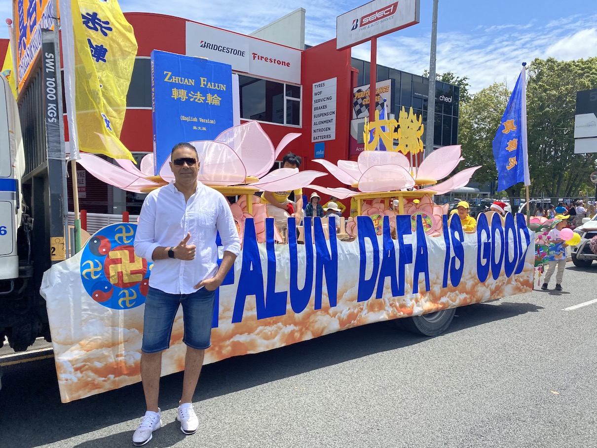 移民新西兰二十六年的老华侨表示:“新西兰有信仰自由,法轮功在这里真好,我支持!你看,他们服装整齐、非常漂亮,新西兰的华人都应该因为有他们而感到自豪。”