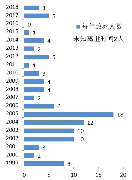 从表中可以看出,从二零零二年到二零零五年被中共迫害致死人数逐渐增加。当时抚顺政法委执政头目吴光,市公安局国保大队长郝建光(抓人凶手,已恶报死亡)。