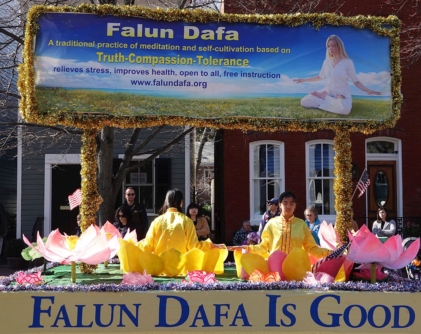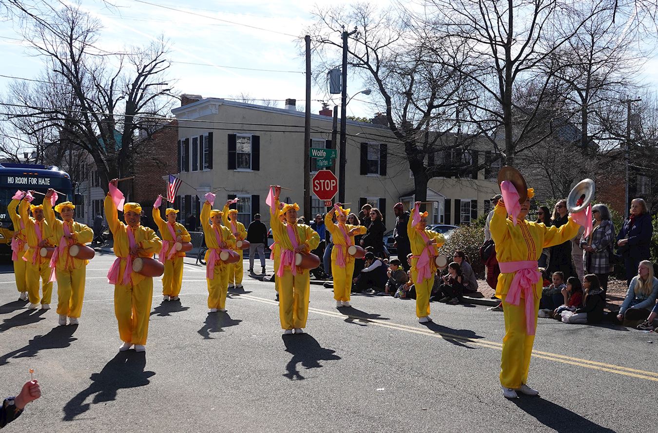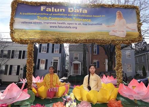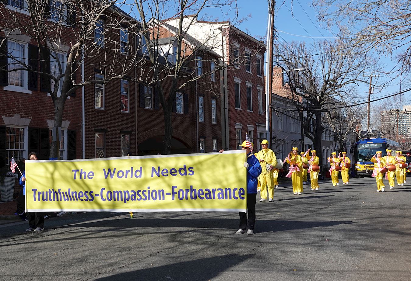![]() 图1:二月十七日,美国弗吉尼亚州亚利山德里亚市举行盛大游行,庆祝美国开国总统乔治华盛顿诞辰二百八十八周年,华府法轮功学员再次应邀参加游行。 |