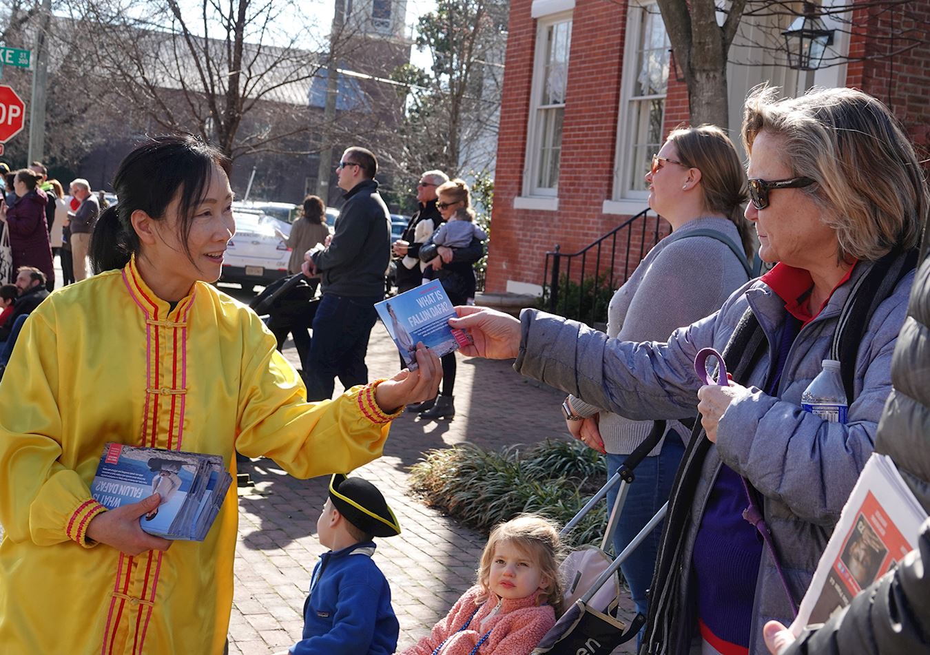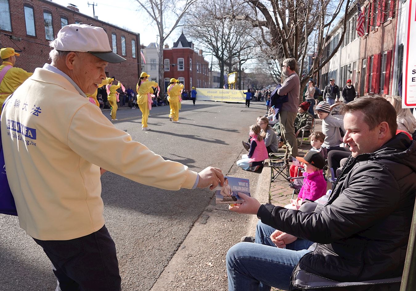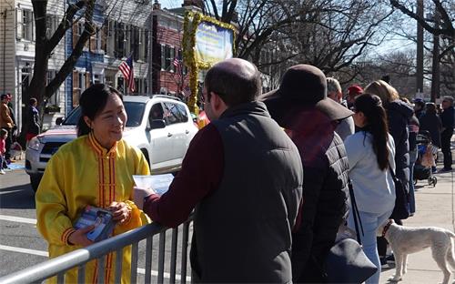 数千名当地居民聚集在街道两旁观看游行,很多人都是第一次听说法轮大法。