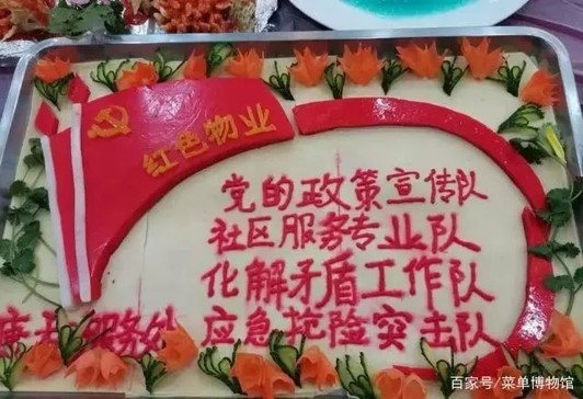 万家宴中,一些歌颂中共的主题菜被高调展出,其中包括“庆祝新中国成立70周年”主题菜、“武汉军运会赛事菜”,向党表忠心、为党歌功颂德菜。