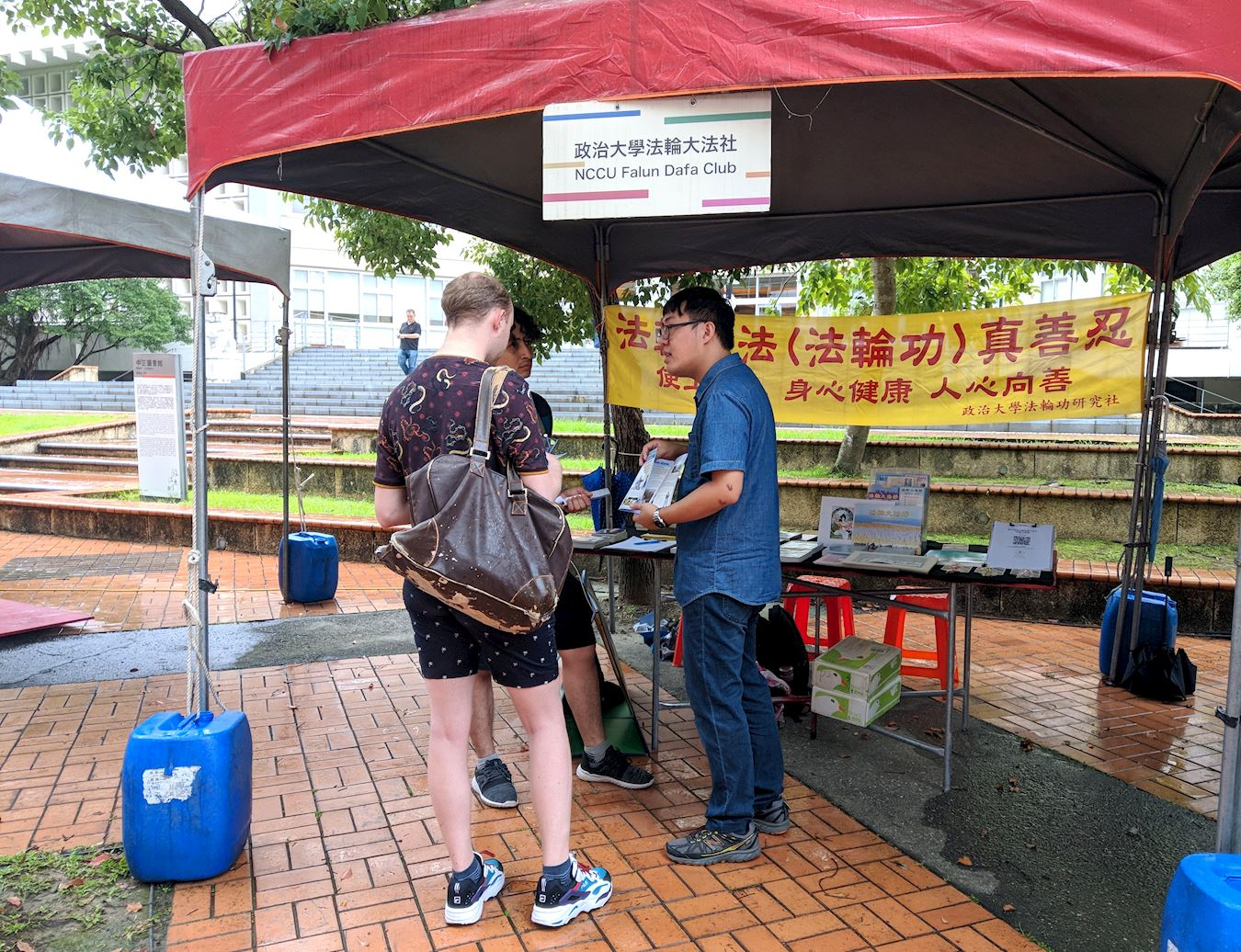 ![]() 图1:政大法轮大法社的成员在大学社团联展上设立展位,传播法轮功真相洪法。 |