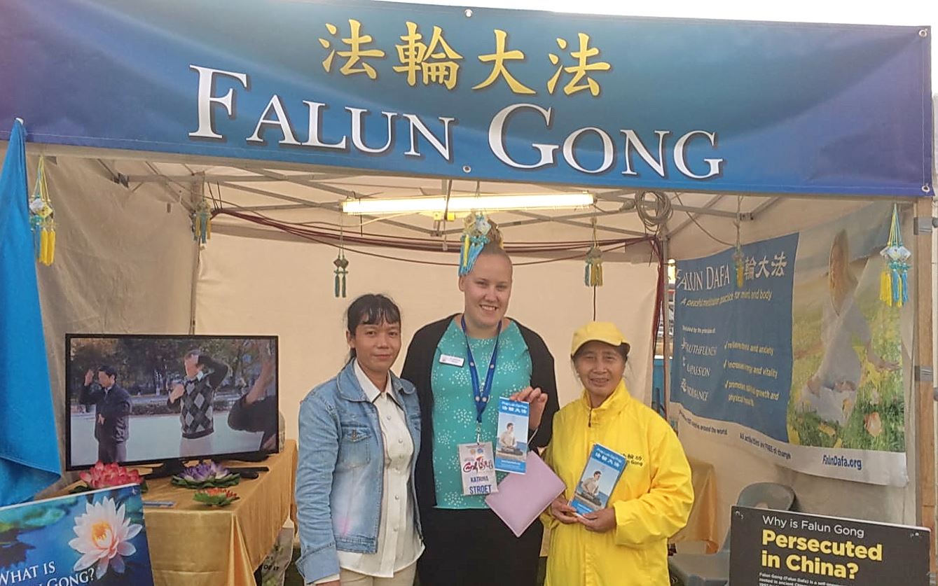 普莱福德市(City of Playford)市议员卡特里娜·斯特罗特(Katrina Stroet)和家人一起来参加活动,当天是第一次听到法轮功。她非常感谢学员给她讲了真相,她和其他三位家人都签名支持法轮功。她还邀请学员到小区教功,学员告诉她教功班脸书信息,可以轻松找到所有信息,她高兴地和学员一起合影。